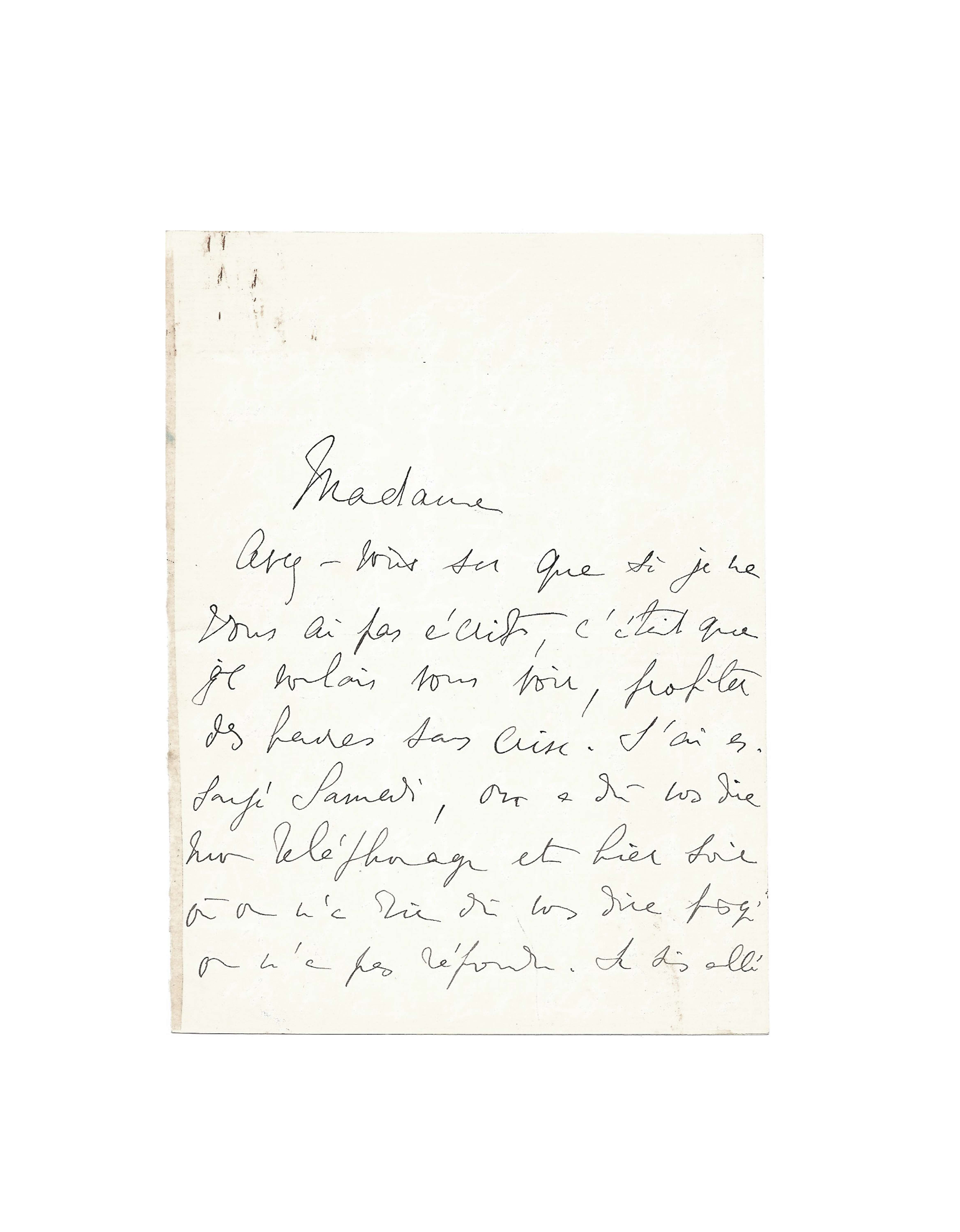 A feeling of singular quality united Marcel Proust to Marie Scheikévitch. Although they met briefly in 1905 in Mme Lemaire’s salon, it was in 1912 that they really get to know eachother. There followed a correspondence that lasted until 1922, the year of the writer’s death. Seeing each other “almost every day” as she would later say (friends writing all the less as they see each other more), we know only 28 letters from Proust addressed to her.