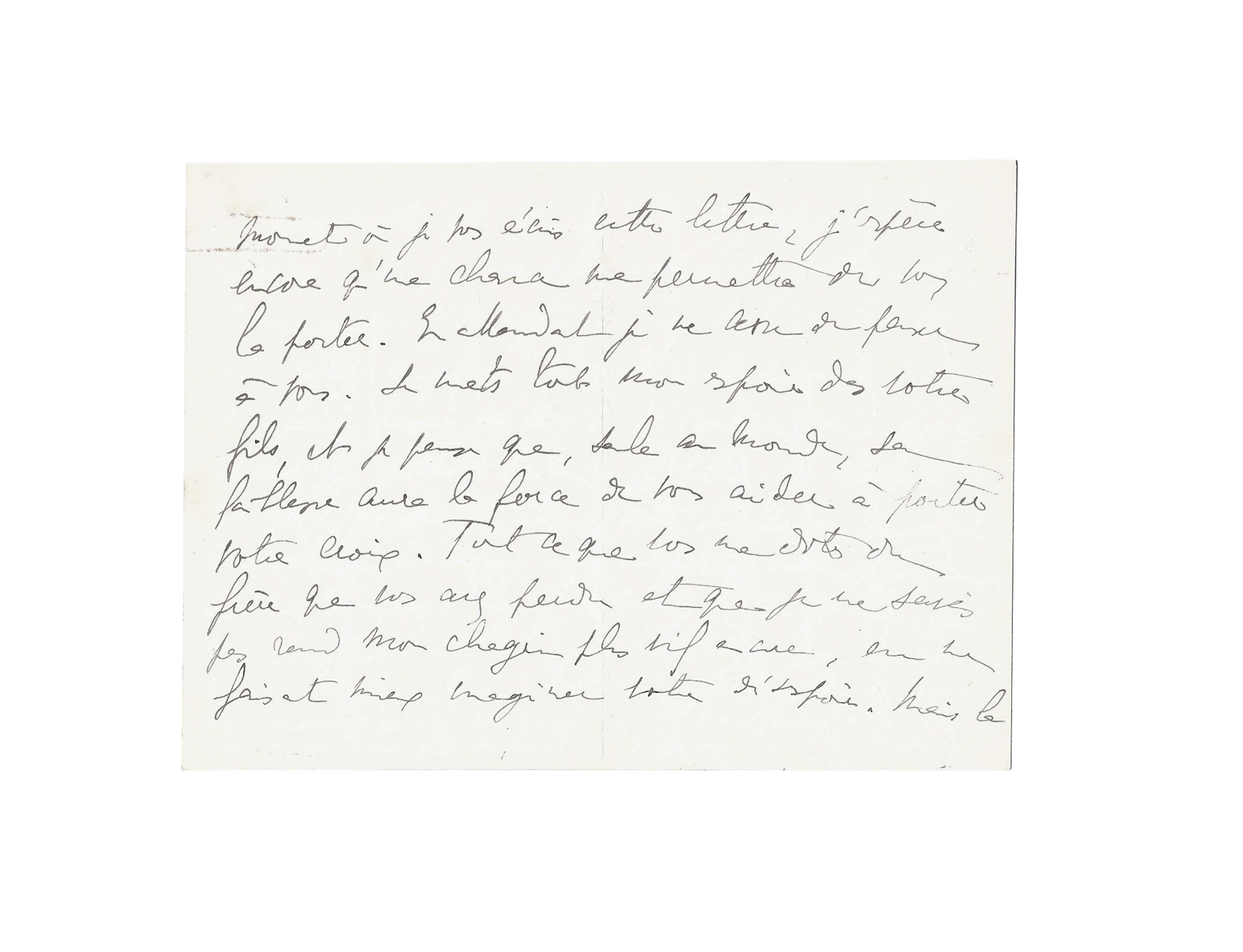 Quand vous aurez le temps de dicter pour moi une une ligne où vous me diriez “mon frère va bien et est moins exposé, mon, fils va bien, j’ai du courage”, vous rendrez bien heureux votre respectueux admirateur.