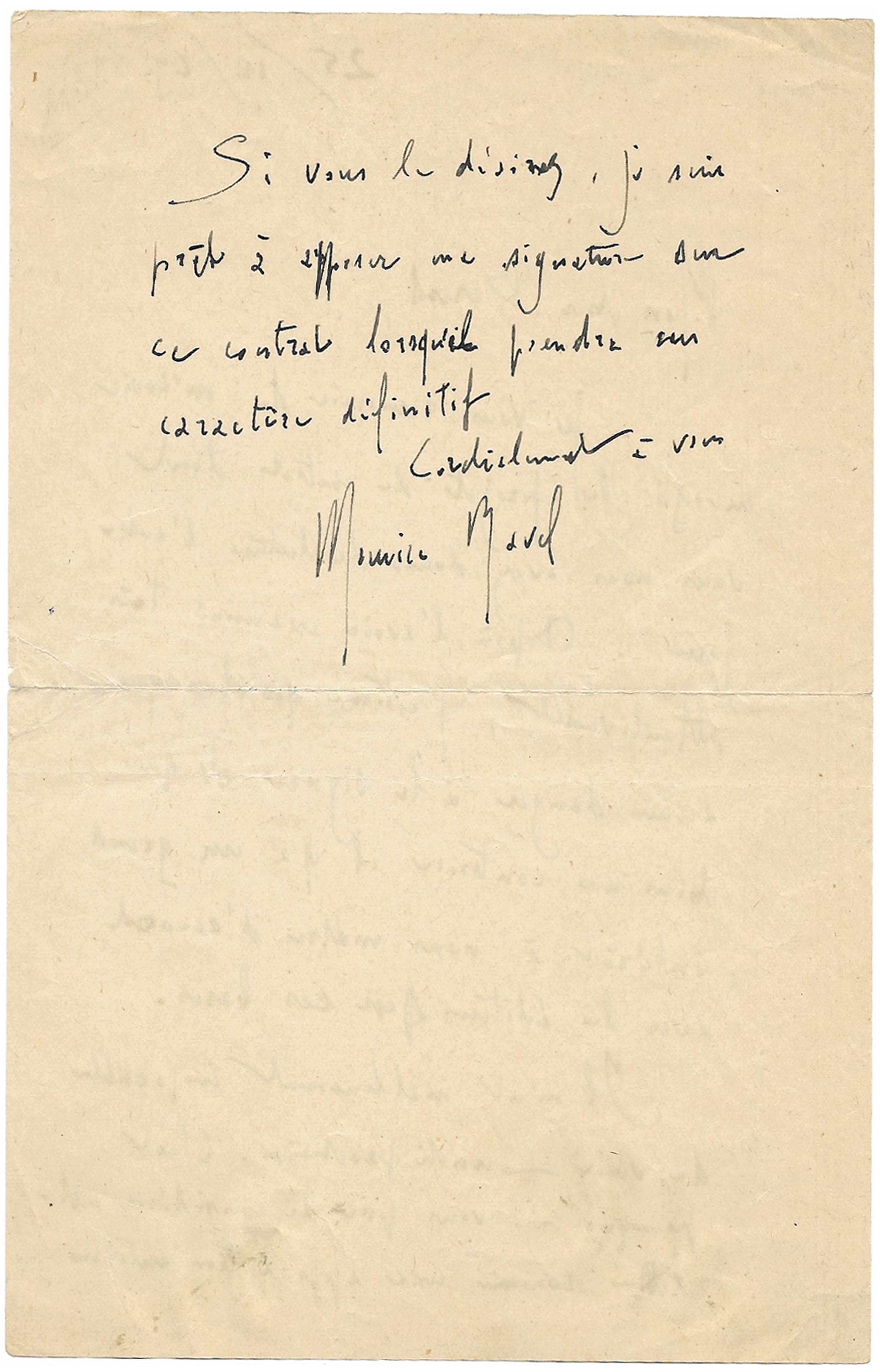 Autograph letter signed « Maurice Ravel » to Jean Bérard