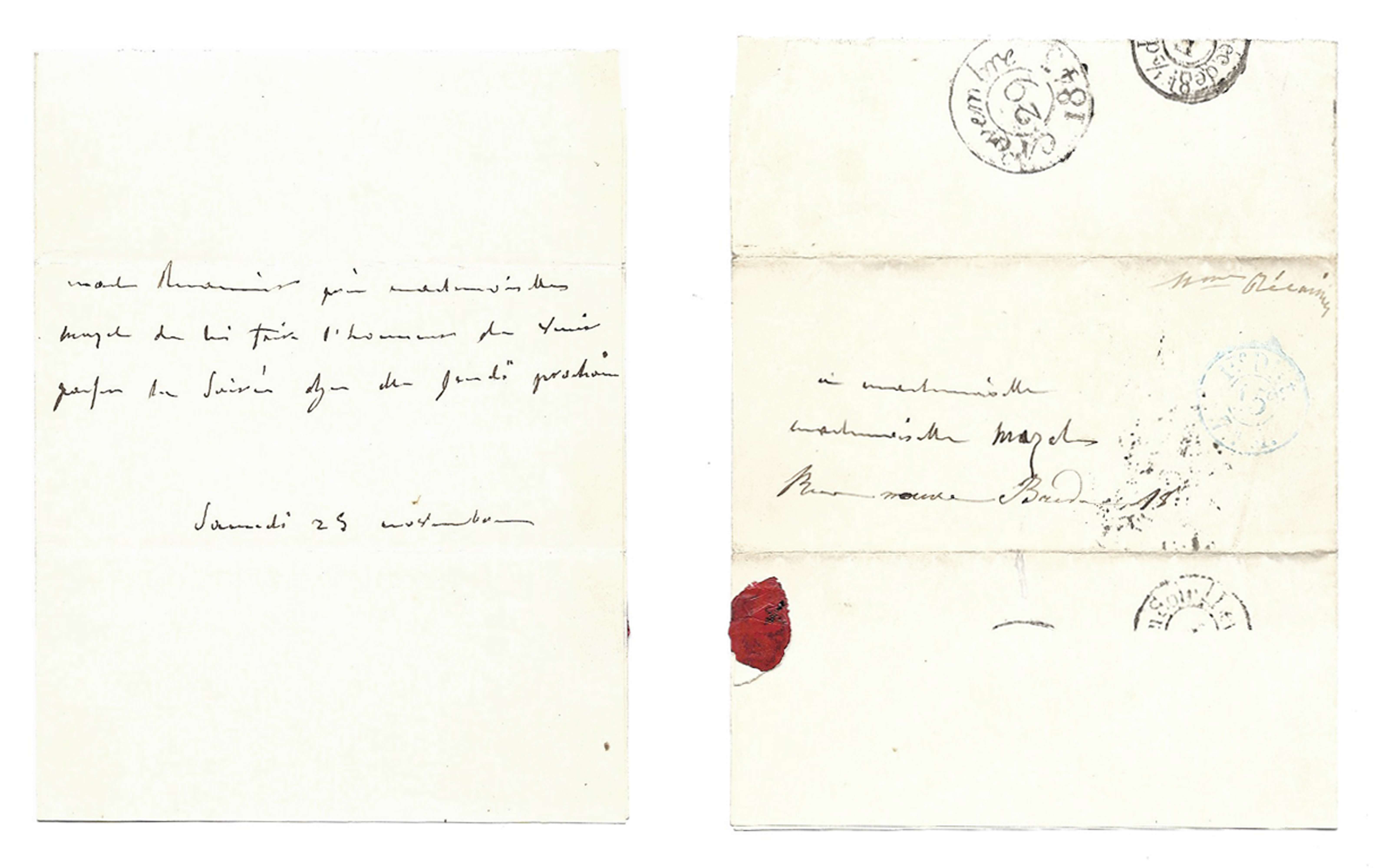 « Mad. Récamier prie Mademoiselle Mazel de lui faire l’honneur de venir passer la soirée chez elle le jeudi prochain.