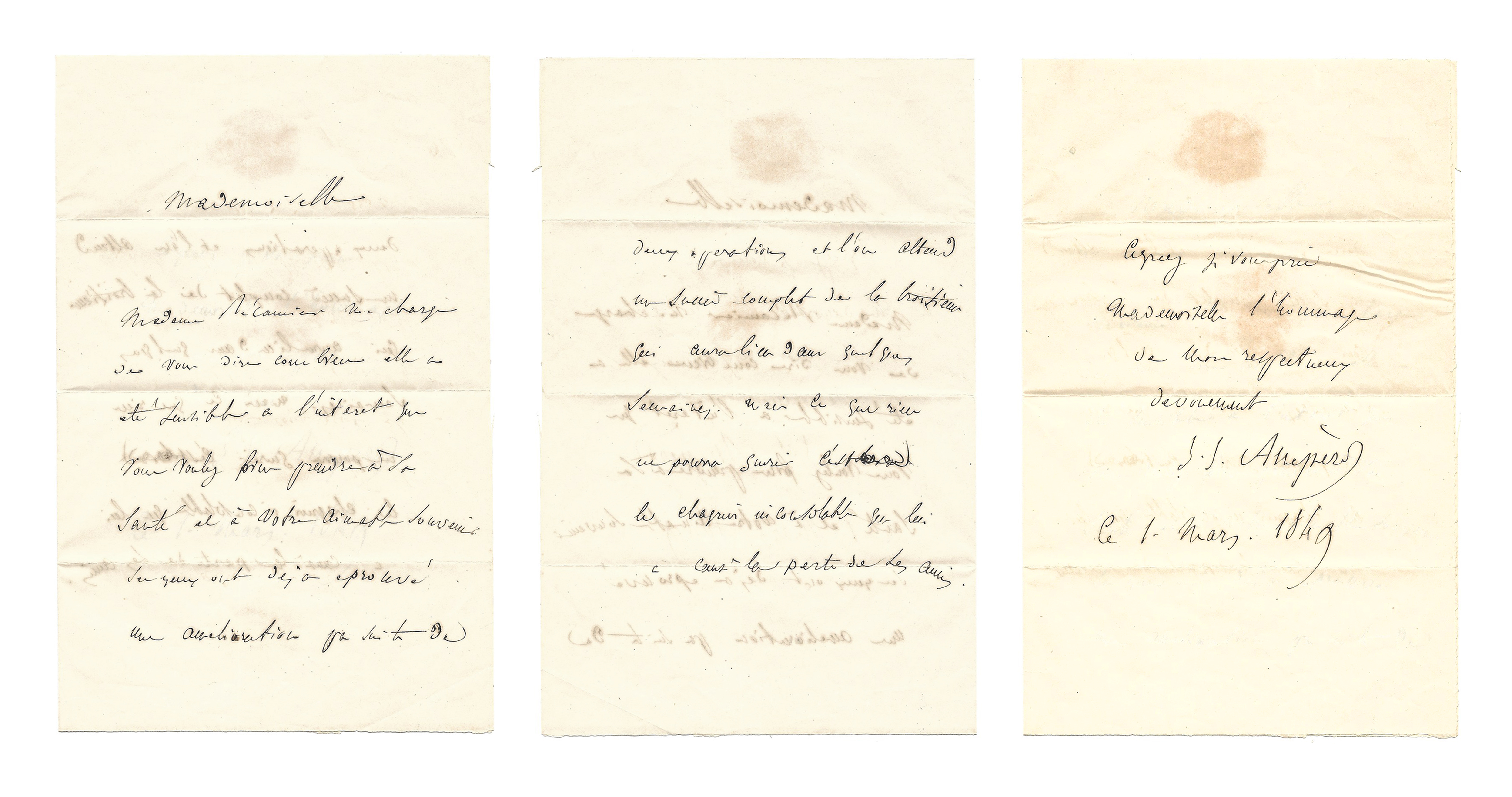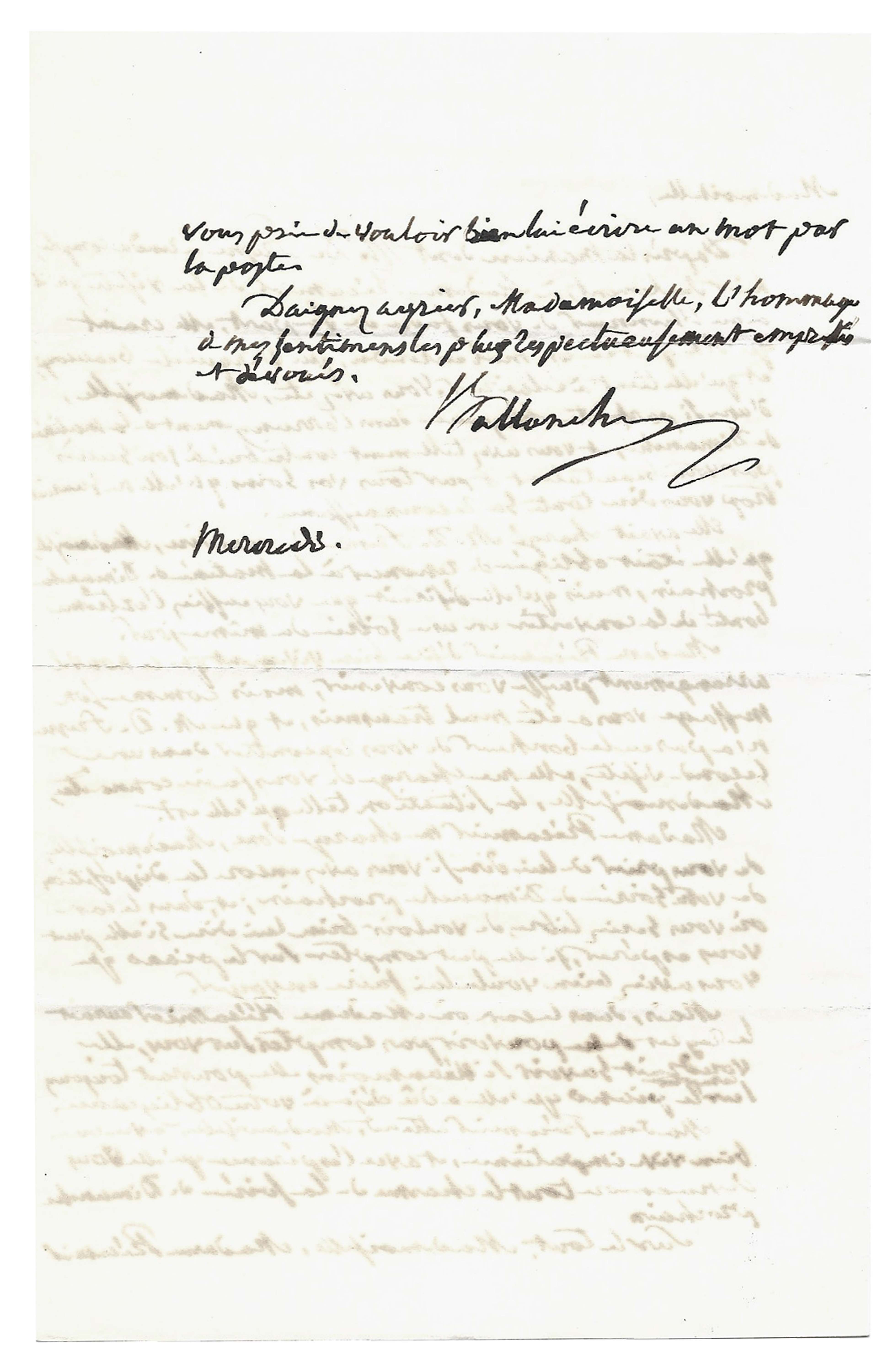 Croyez je vous prie Mademoiselle l’hommage de mon respectueux dévouement.