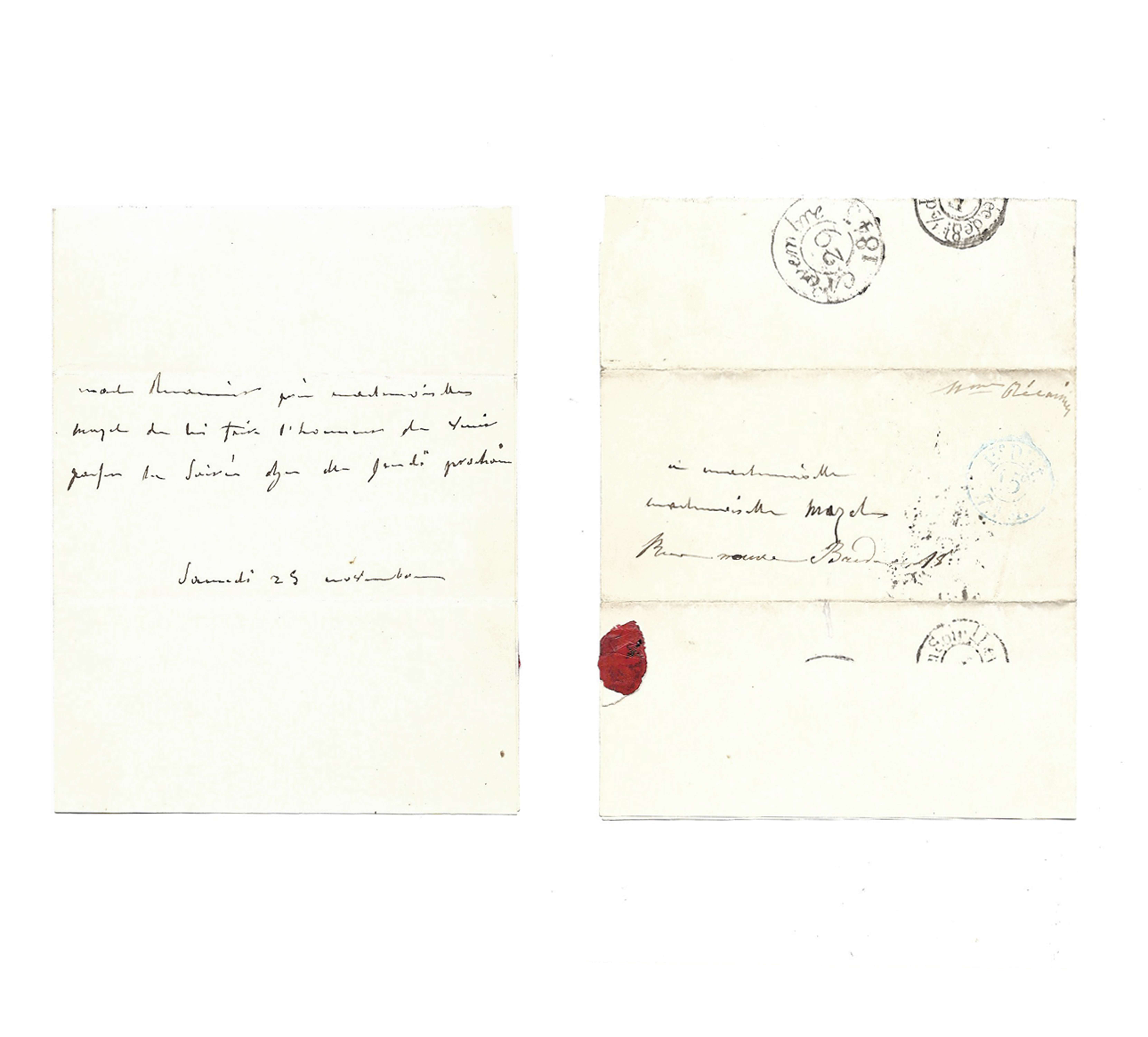 Autograph letter of one of Juliette Récamier, with five additional letters about her