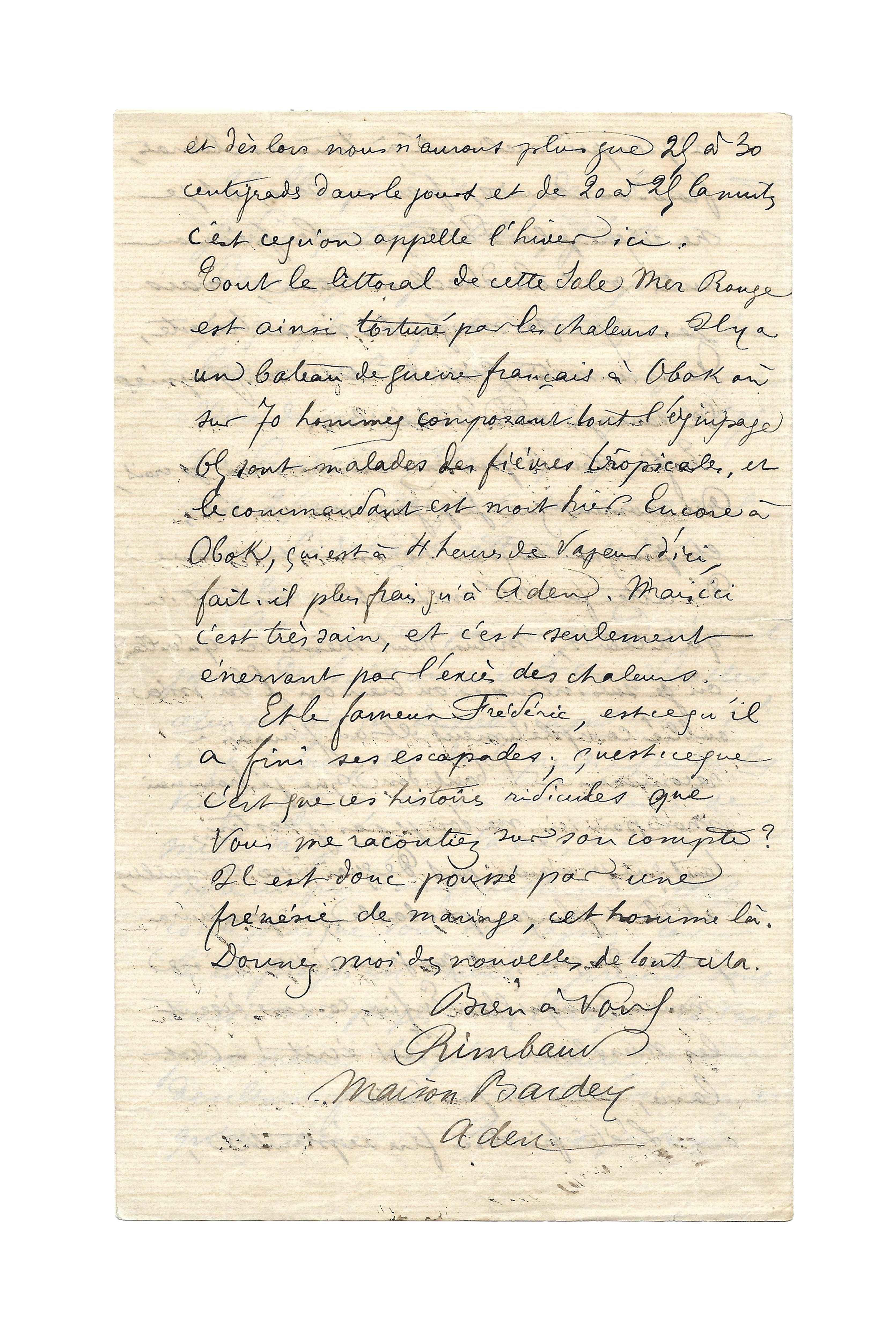 Imbued with fatalism, Arthur Rimbaud speaks of his difficult existence in Aden