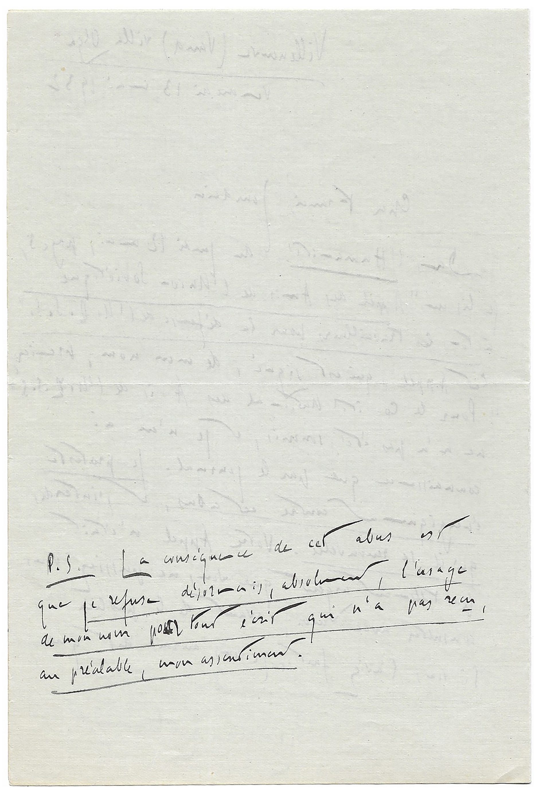 P.S. La conséquence de cet abus est que je refuse désormais, absolument, l’usage de mon nom pour tout écrit qui n’a pas reçu, au préalable, mon assentiment. »