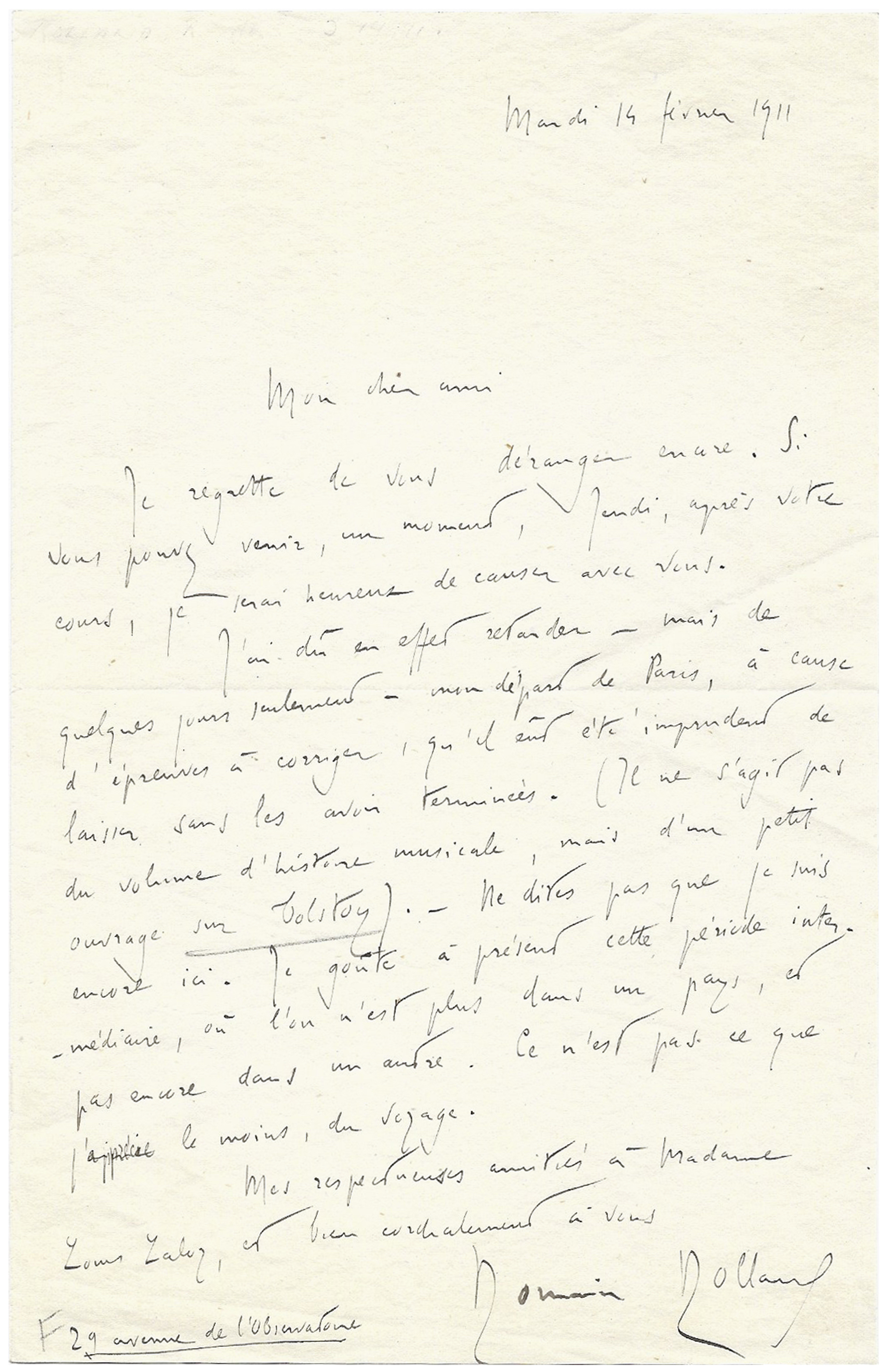 This letter does not appear in Bernard Duchatelet’s inventory of Romain Rolland’s autographs