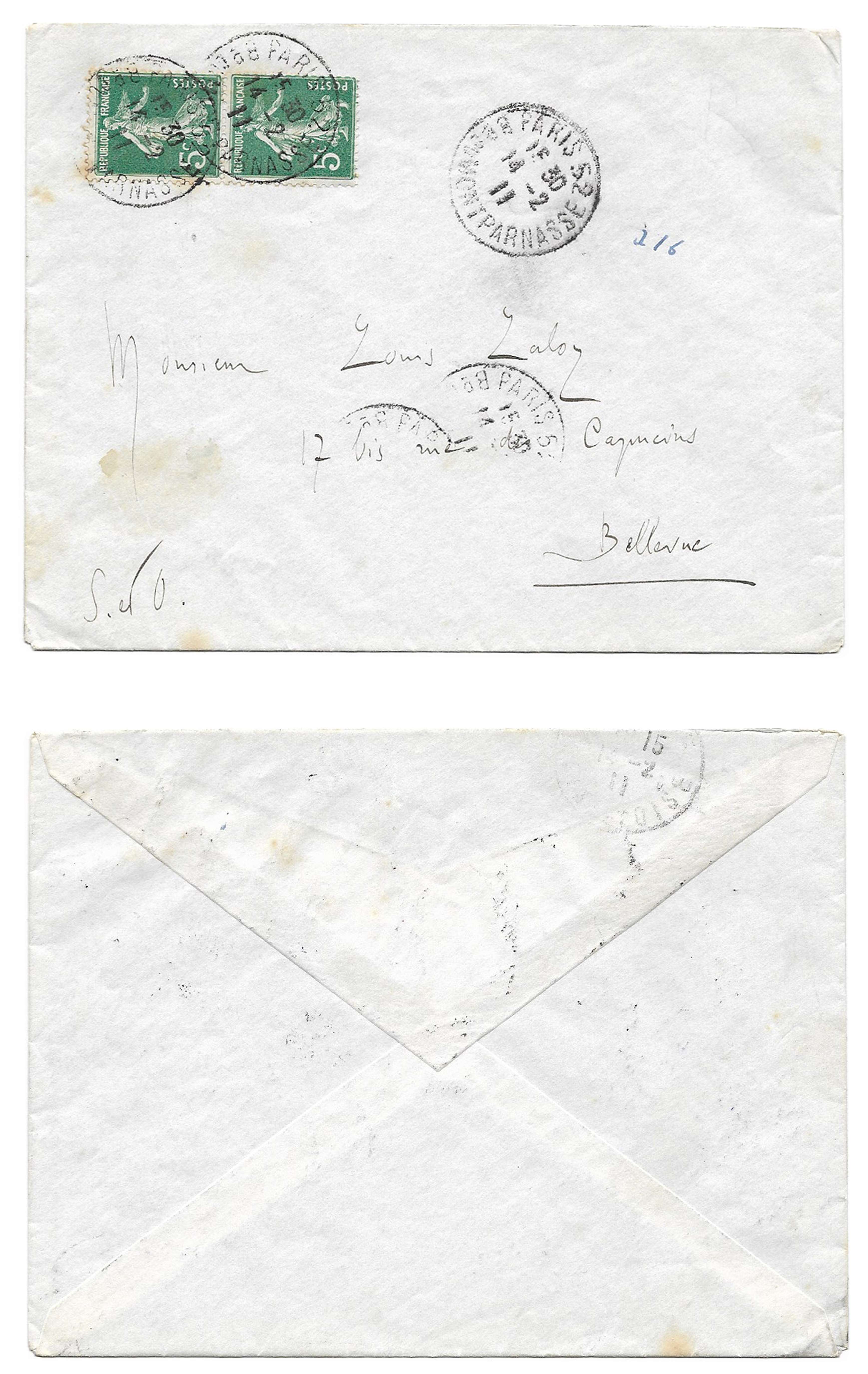 [Paris], 14 Feb. 1911, 1 p. in-8° with envelope