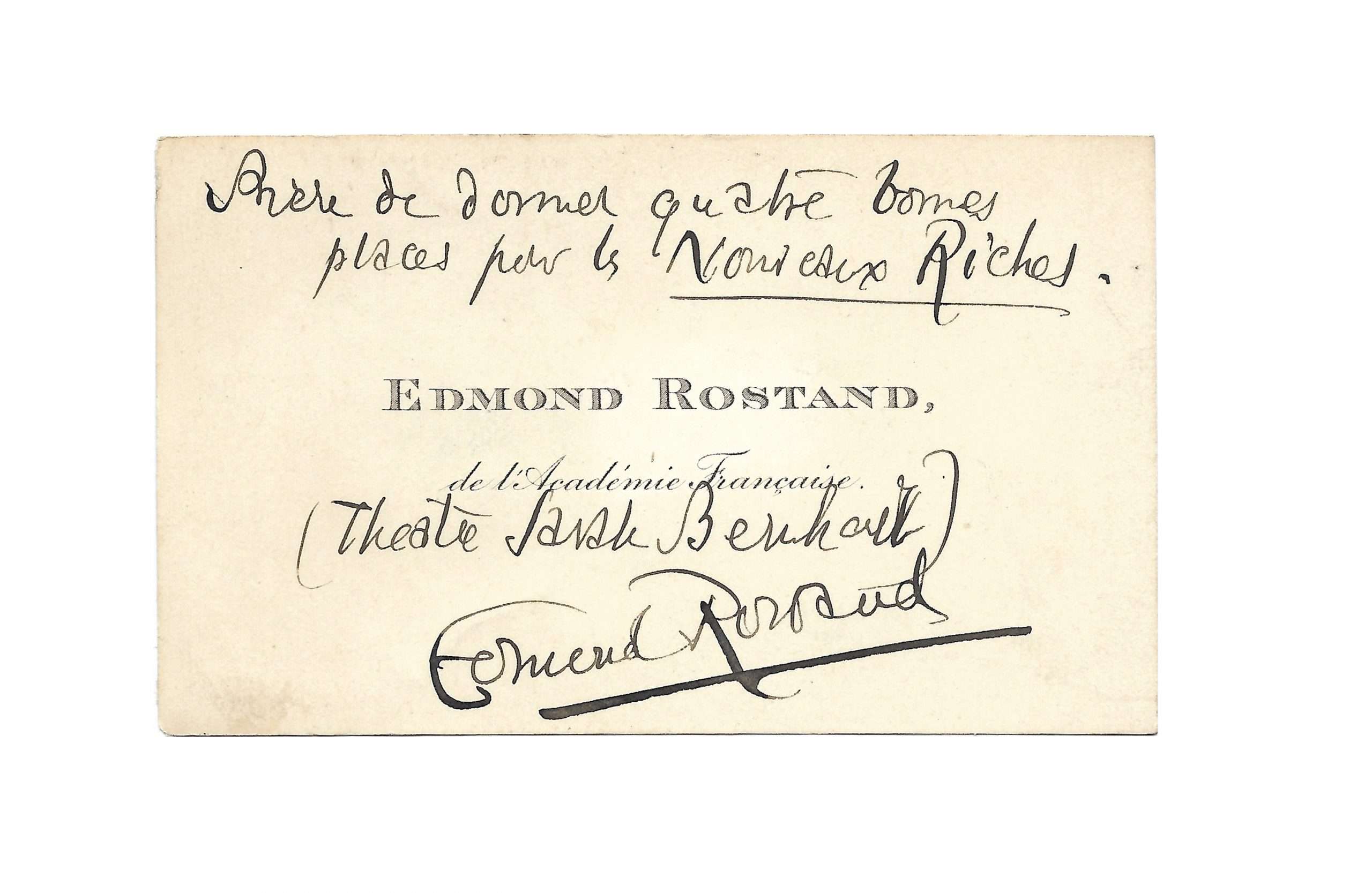 Name card with autograph additions, signed “Edmond Rostand”