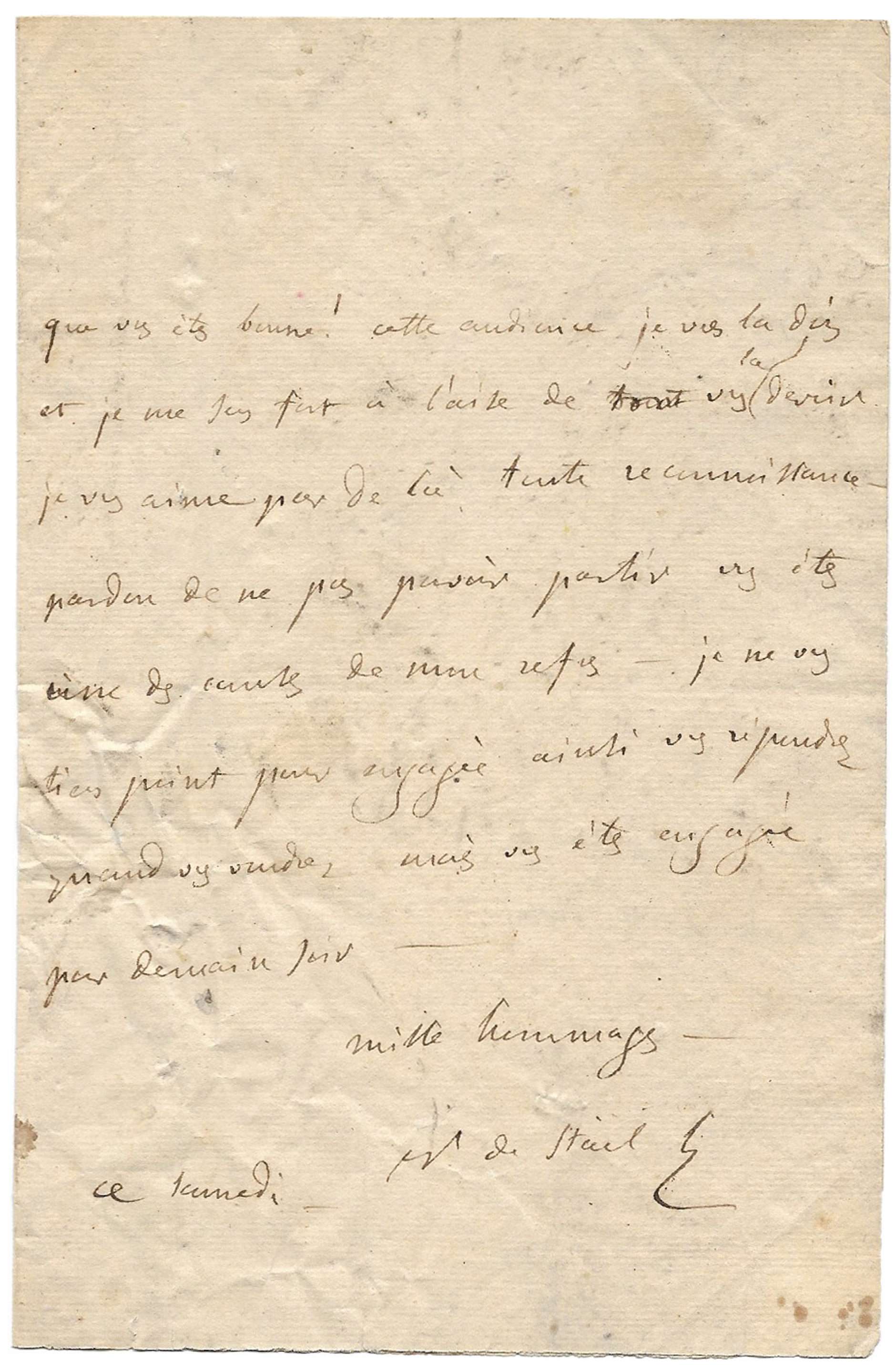 One word crossed out in Madame de Staël’s hand