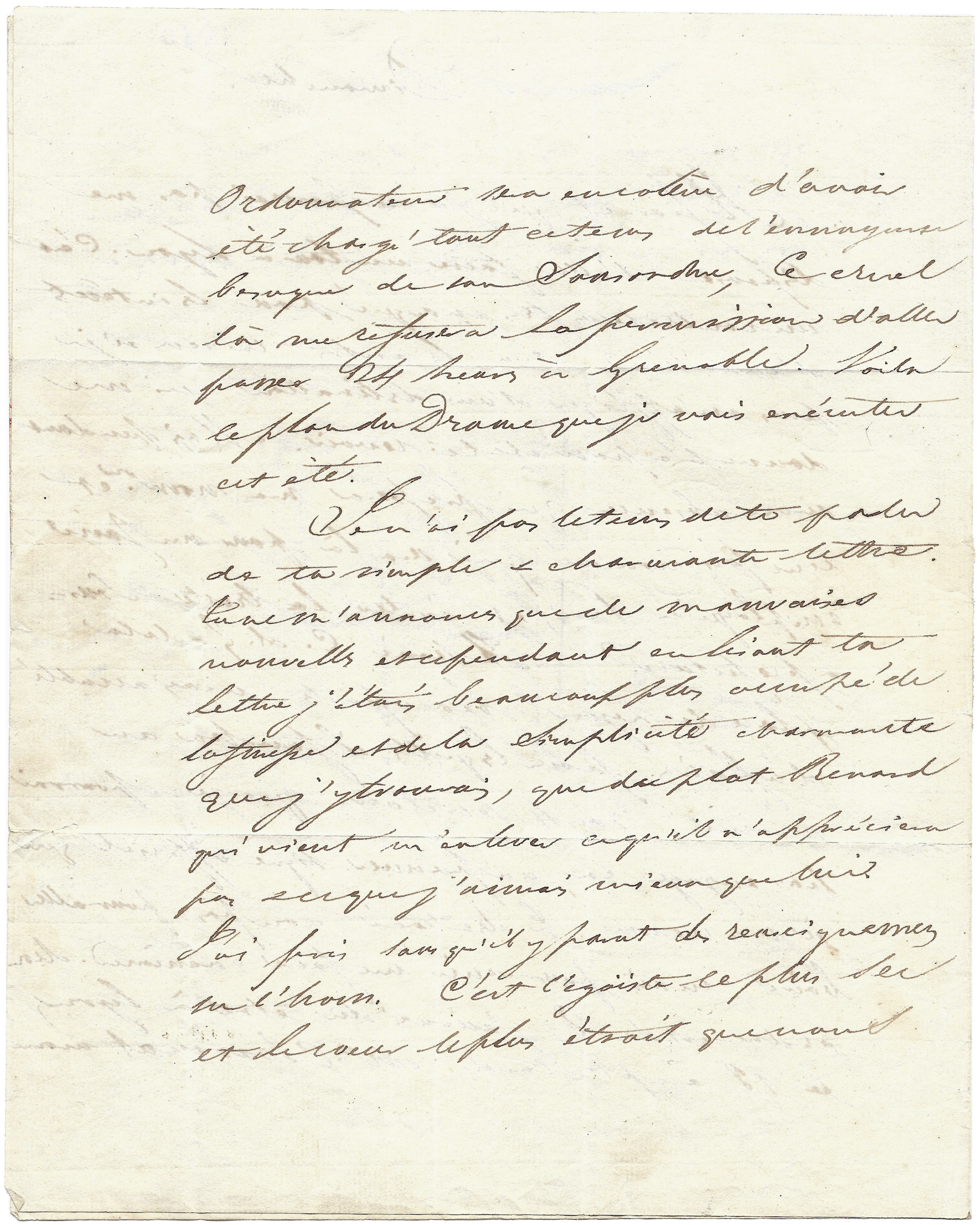 Ne dis pas mon voyage à Gr[enoble], même à nos parents. Il y a encore quelque possibilité de l’éviter. »