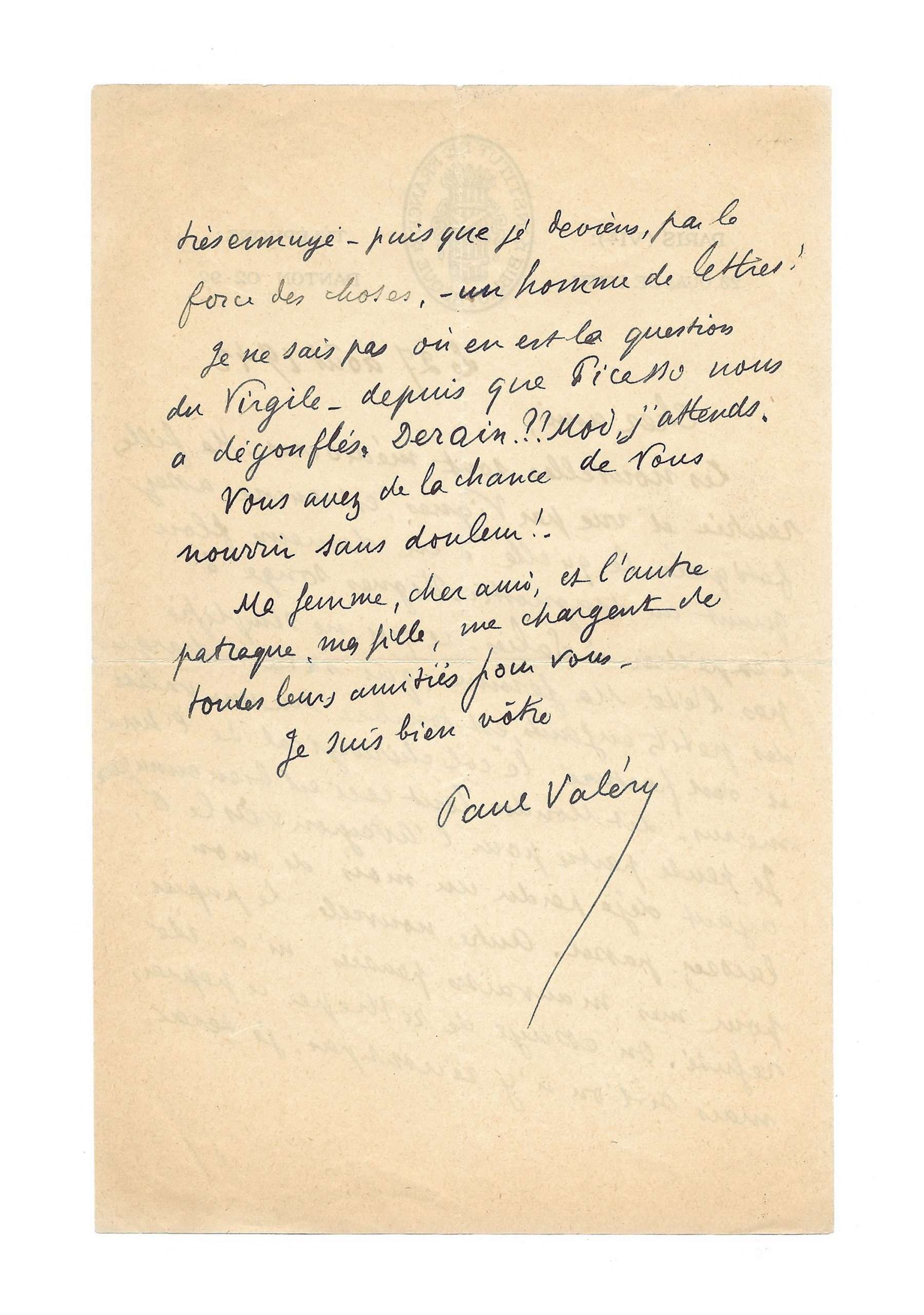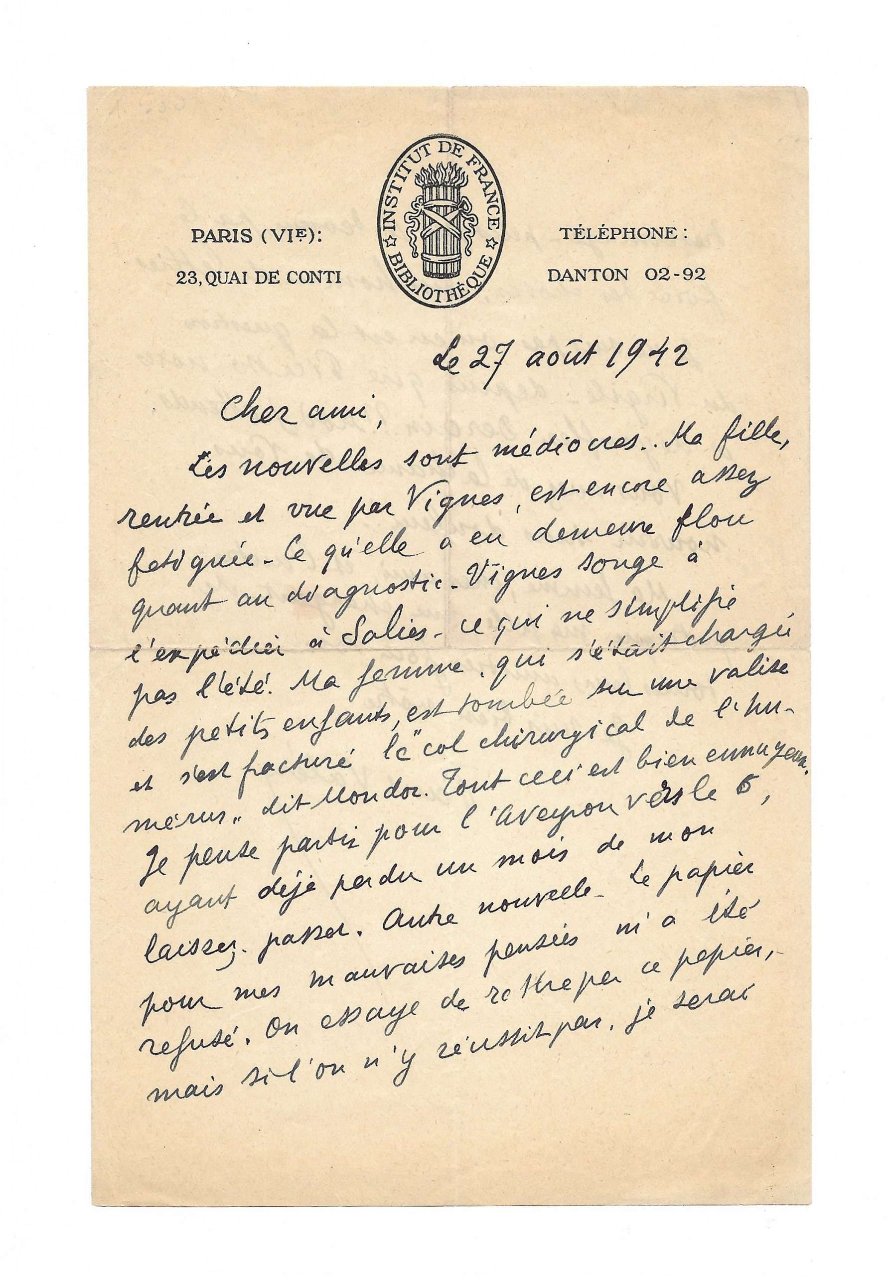 N.p [Paris], 27th August 1942, 2 pages in-8, Institut de France letterhead