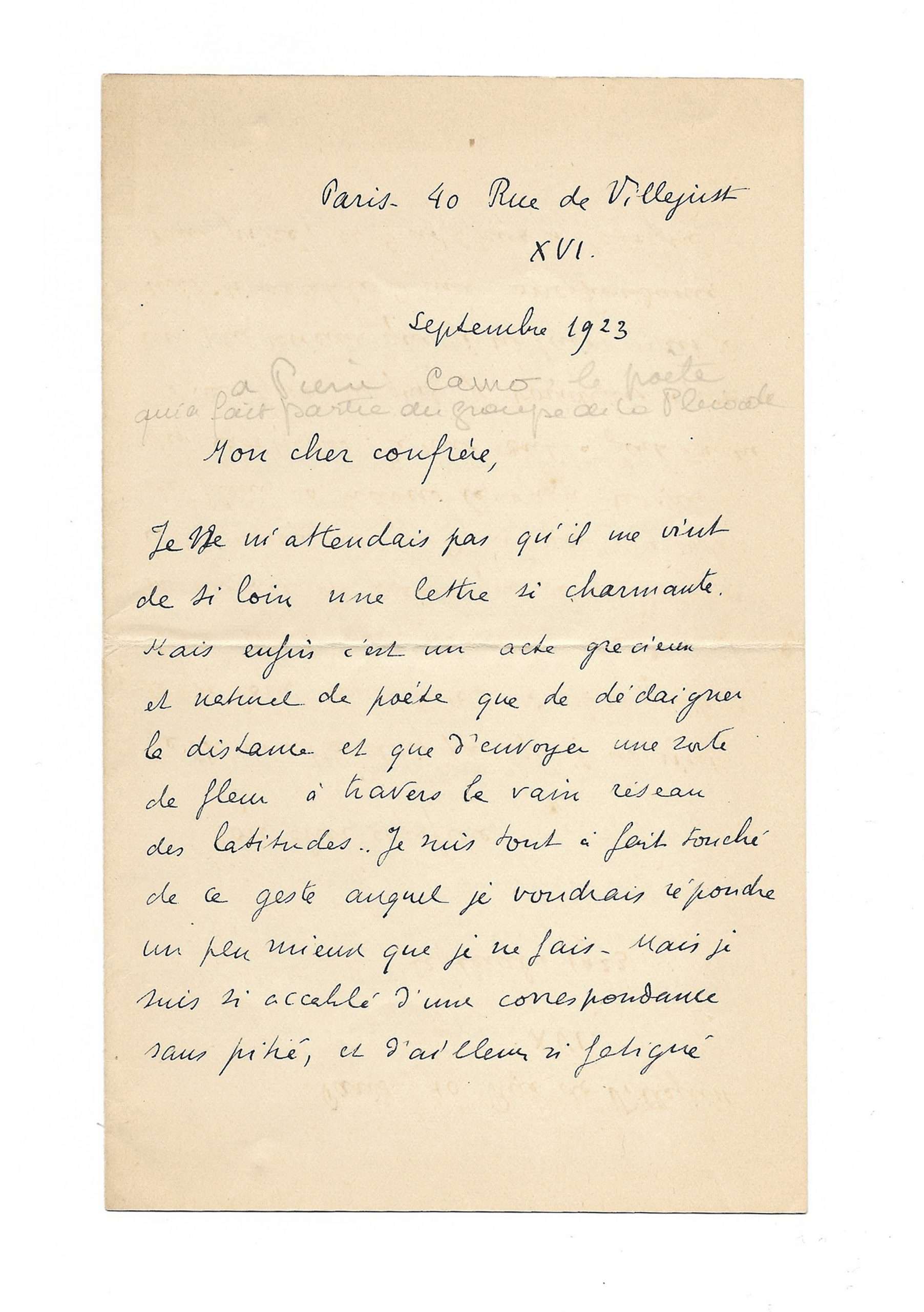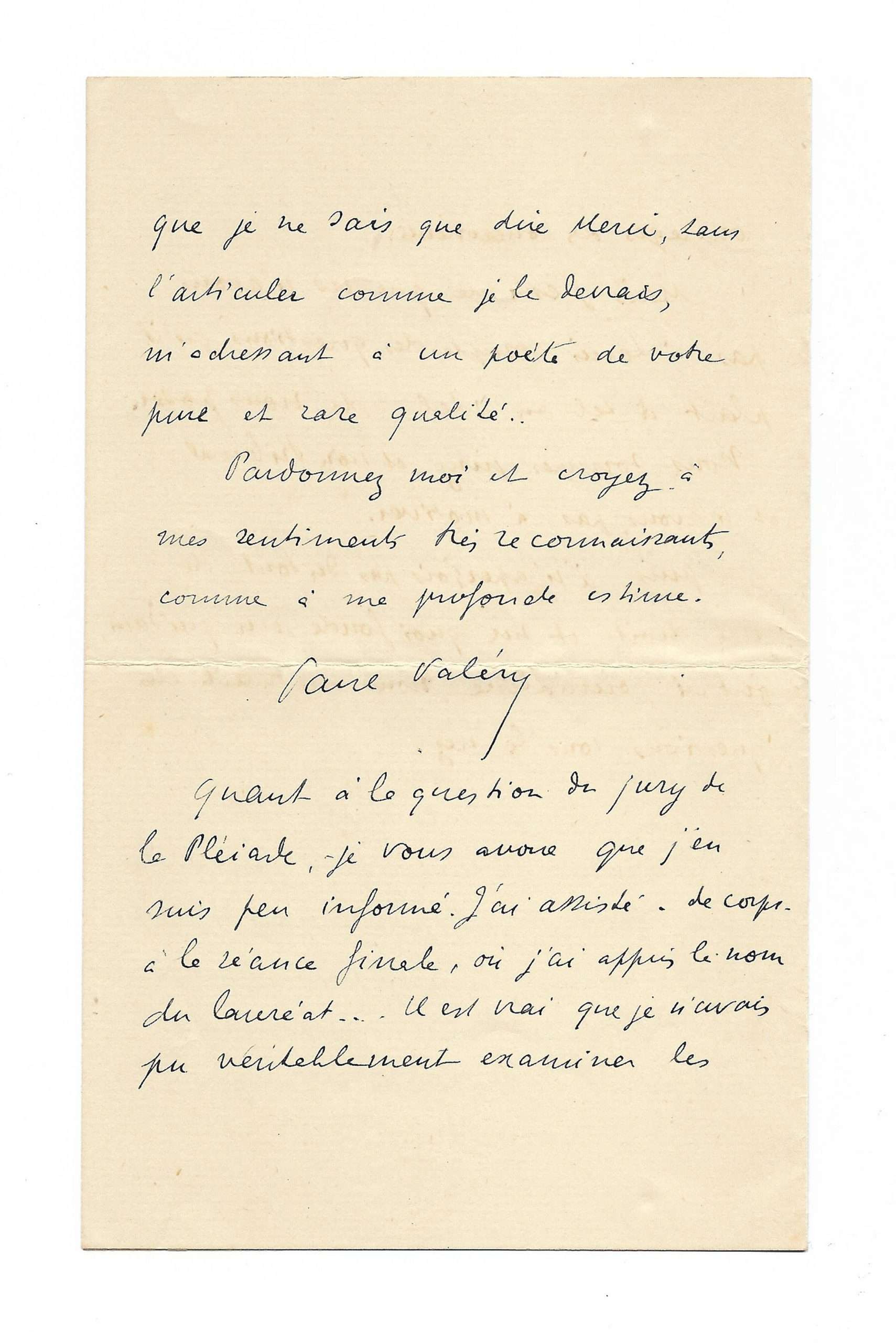 Beautiful poetic letter from Paul Valéry about the Pleiade