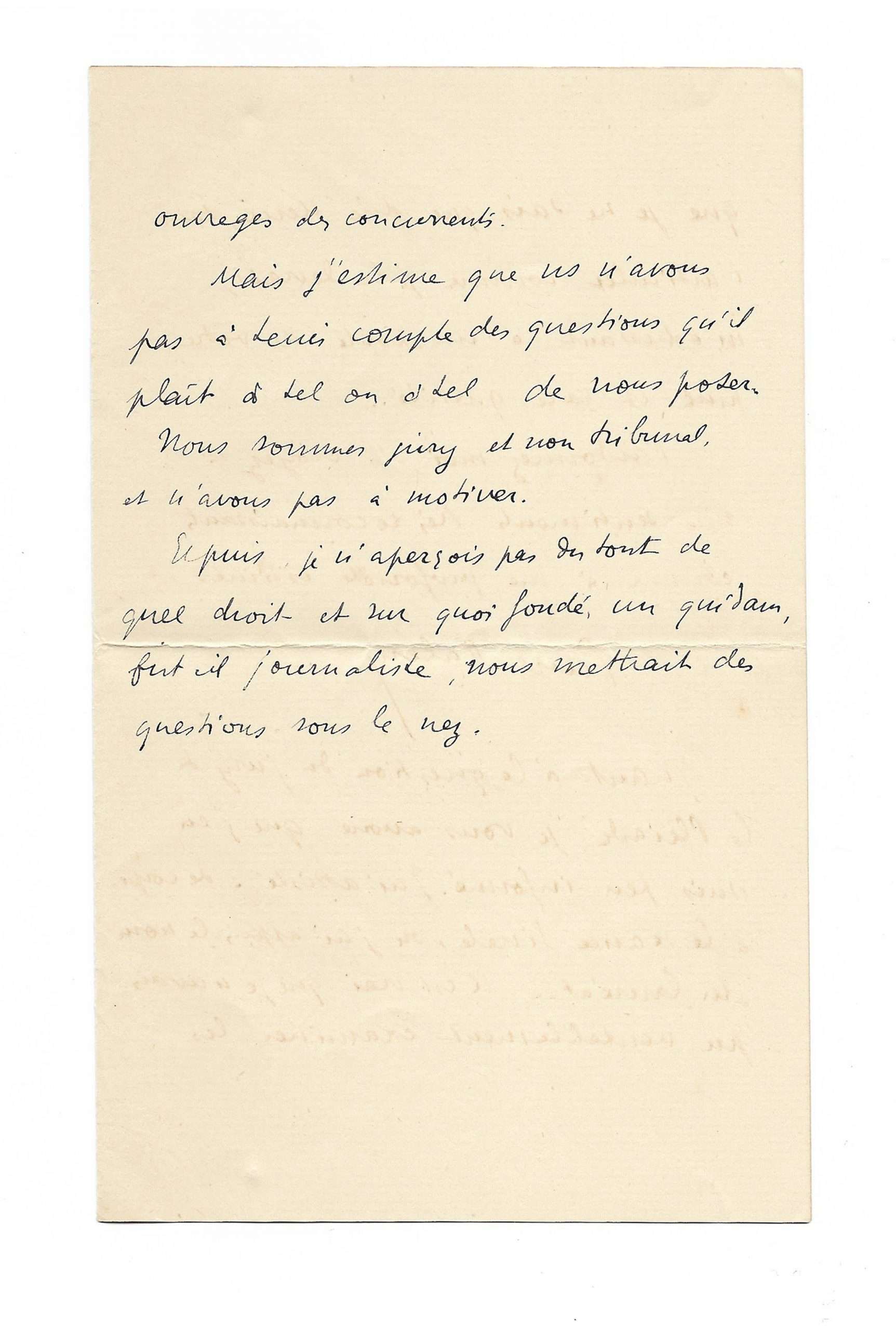 Et puis je n’aperçois pas du tout de quel droit et sur quoi fondé, un quidam, fut-il journaliste, nous mettrait des questions sous le nez.”