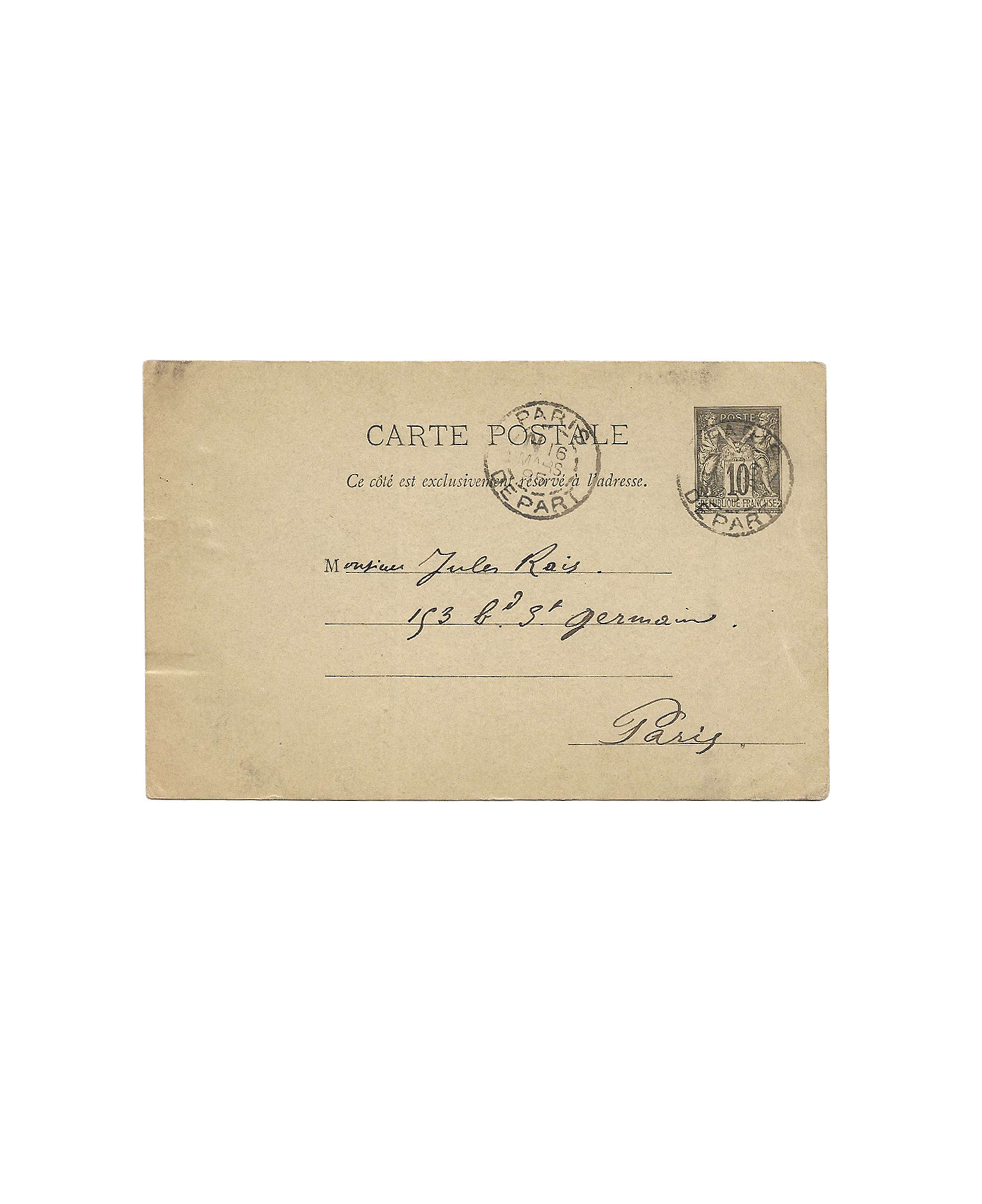 Autograph post-card signed « Votre P. Verlaine » to Jules Rais