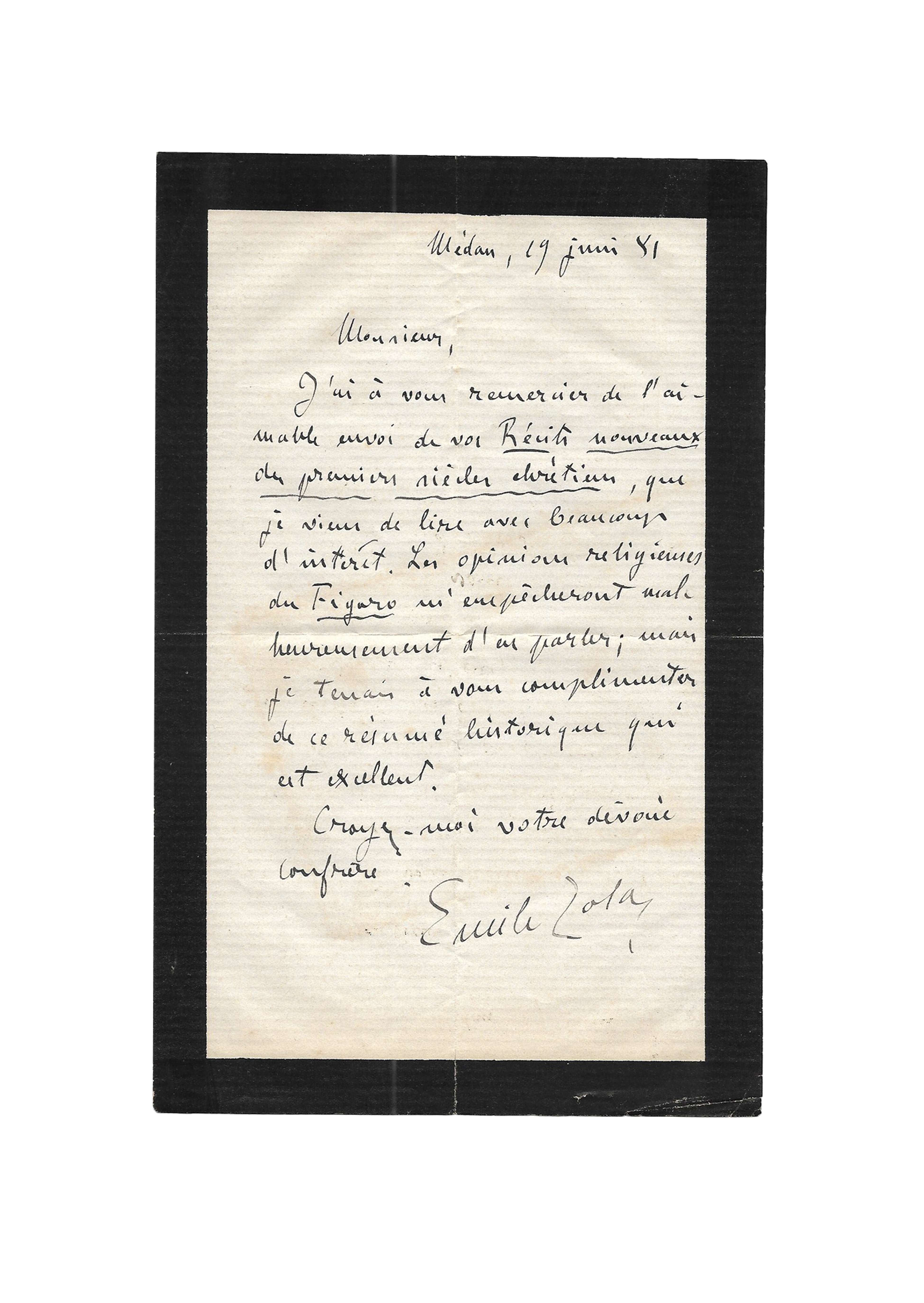Médan, 19th June [18]81, 1 p. in-8° on mourning paper