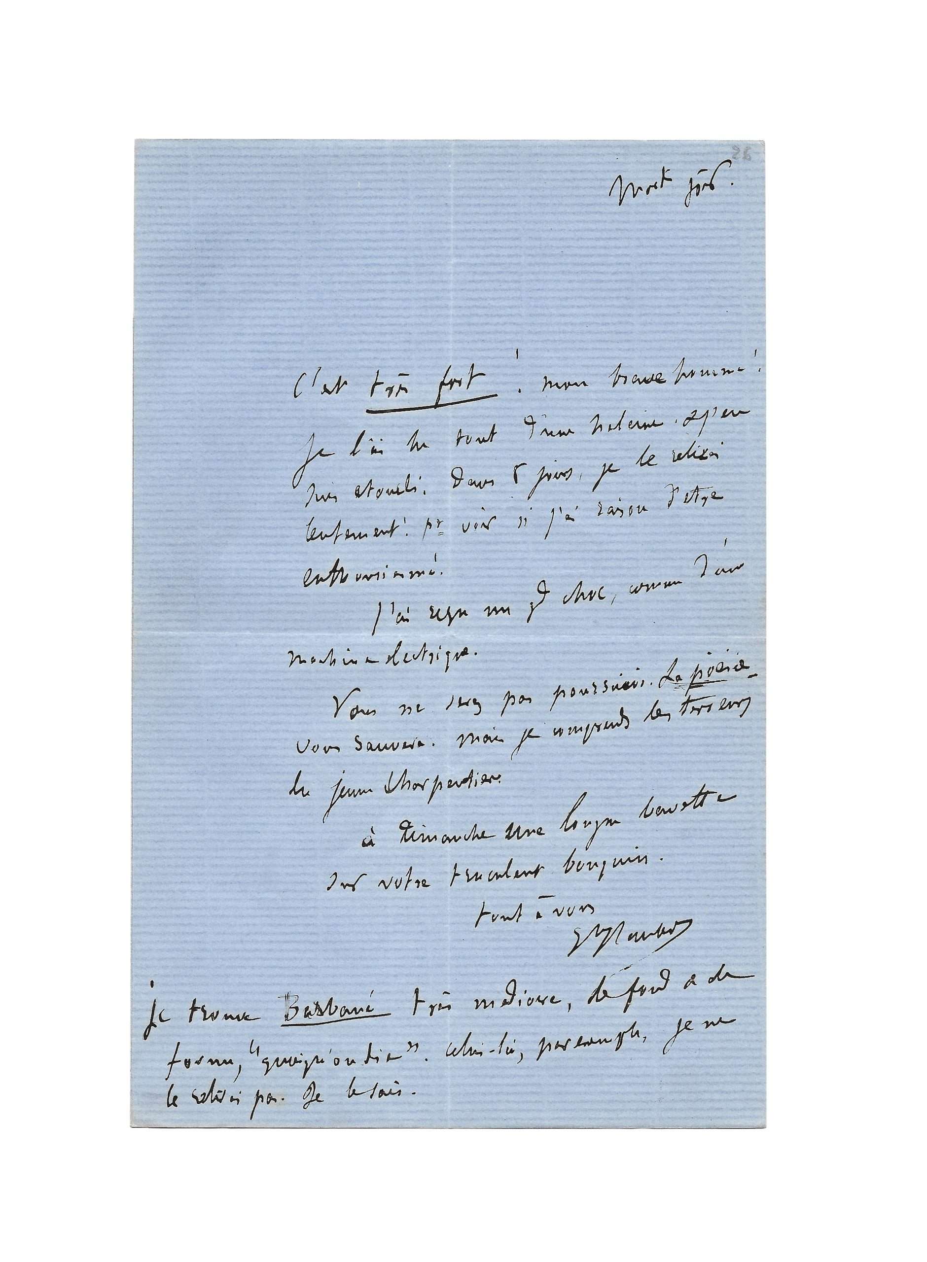 N.p.n.d [Croisset, 26th May 1874], 1 p. in-8° on blue laid paper