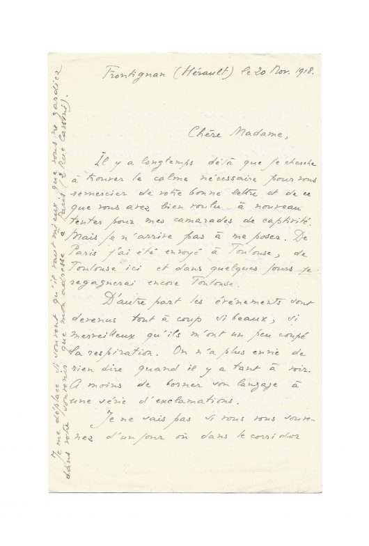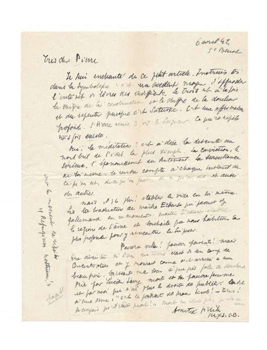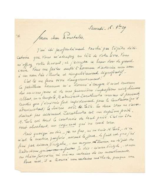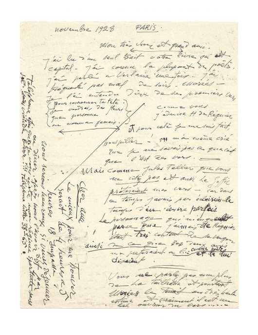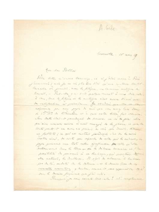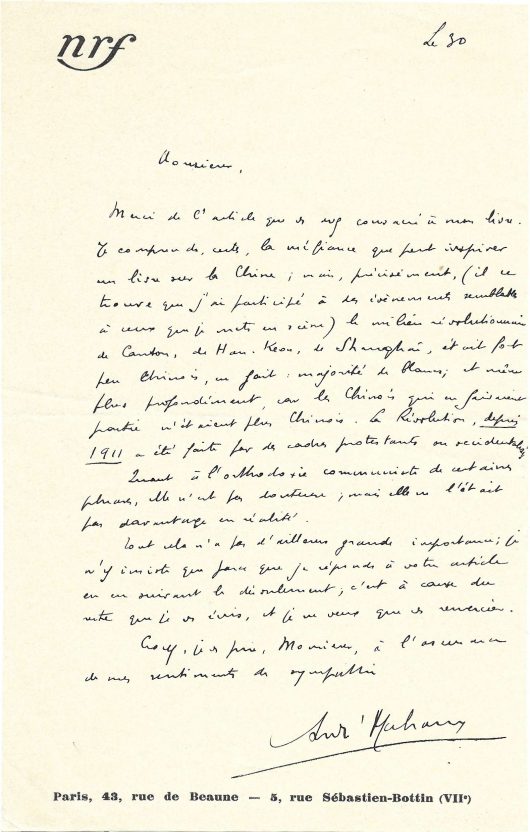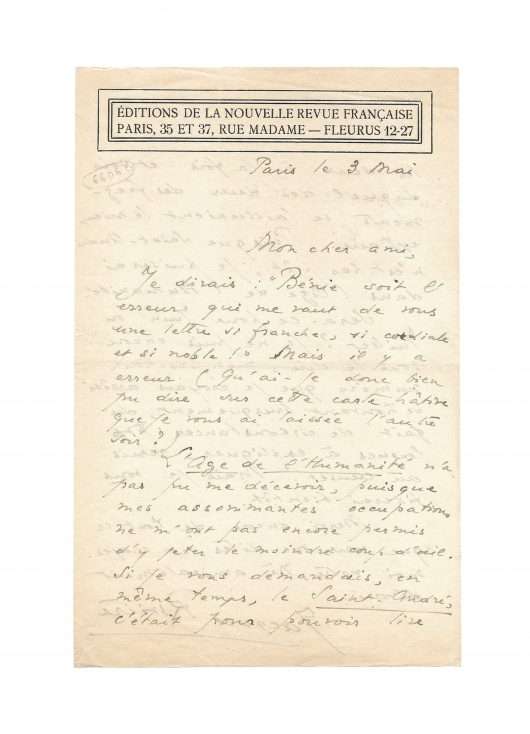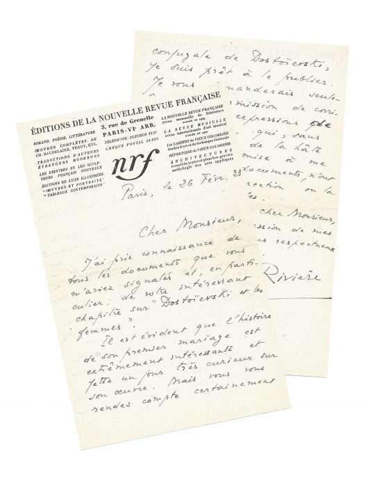 Paris, 26 Feb. [19]23, 4 p. in-8°, NRF letterhead