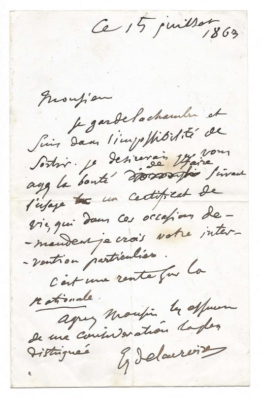 [Paris, c. 1842], 1 p. in-8, autograph address on verso « Delacroix »
