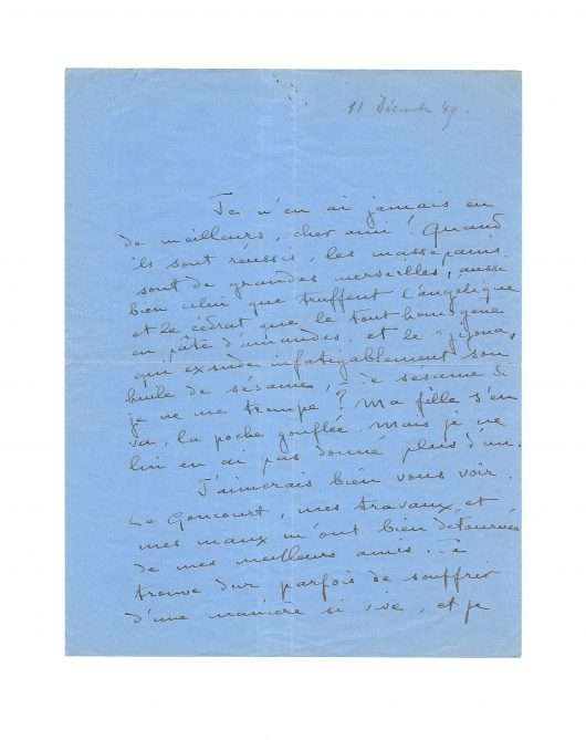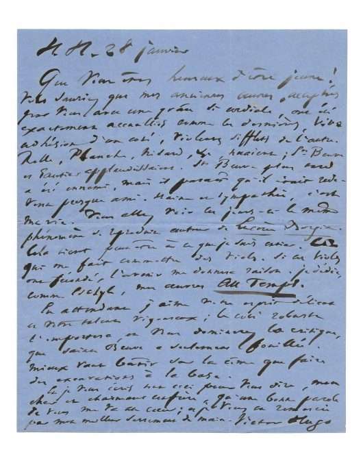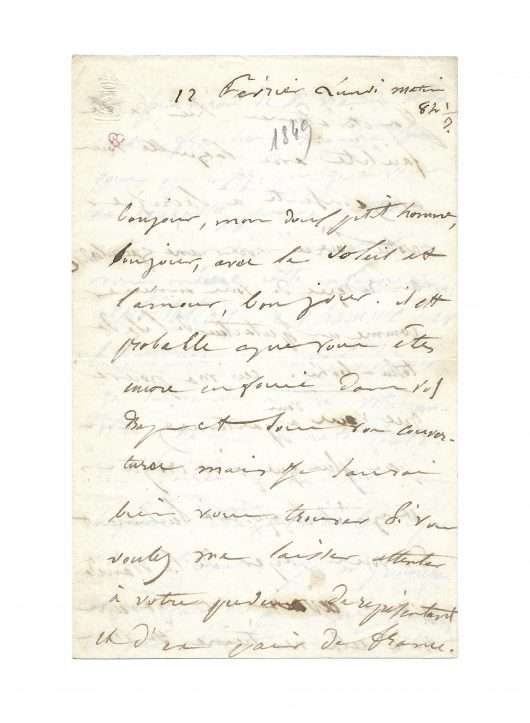 Croisset, 26 January [1862], 2 p. in-8 on blue laid paper