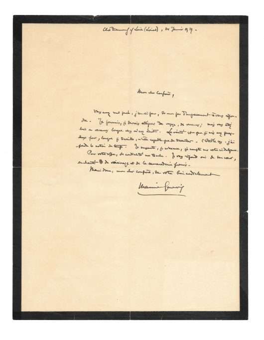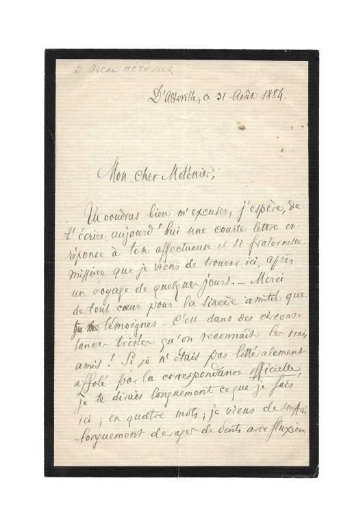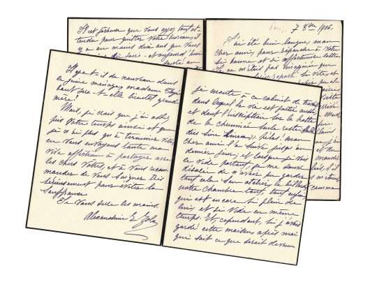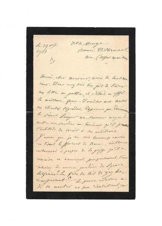 [Paris], 7 8bre [octobre] 1906, 8 pp. in-8° à l’encre violette sur papier de deuil