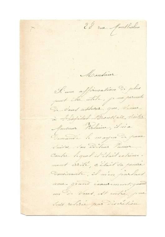 « I know the interest you have in Madame Valmore. However, I want to… beg you to do everything you can for her »