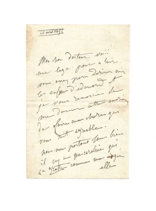 Paris, 22 7bre [September] 1895, 1 p. in-8° on laid bi-folio