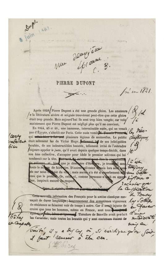 « Yesterday I received a letter from Baudelaire inviting me to ask for your voice for his candidacy to the Academy »