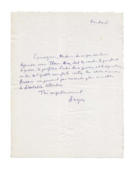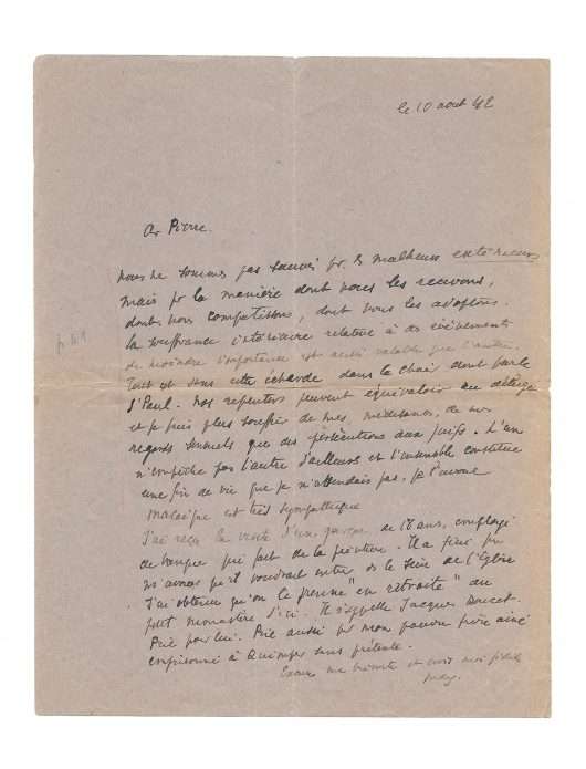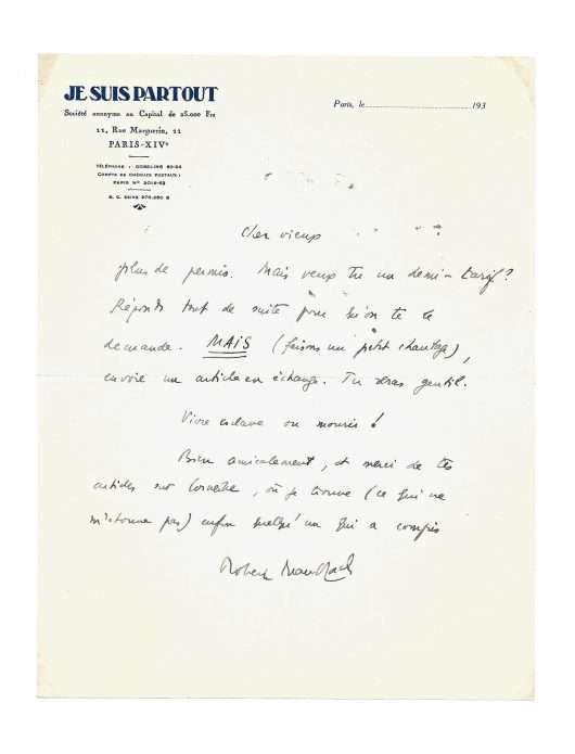 Autograph letter signed « André Suarès » [to Thierry Maulnier]