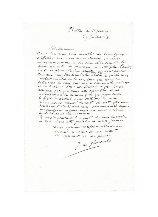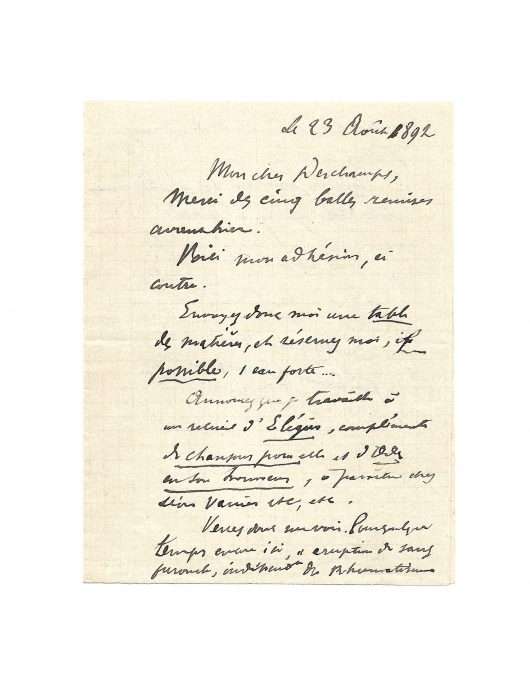Paris, 20th March 1893, 1 p. in-8° on laid paper