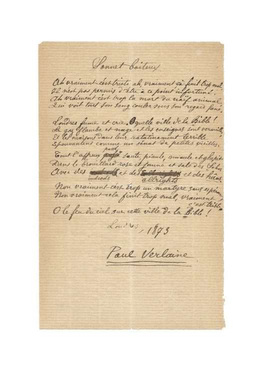 Autograph letter signed twice « Paul Verlaine » to Léon Deschamps