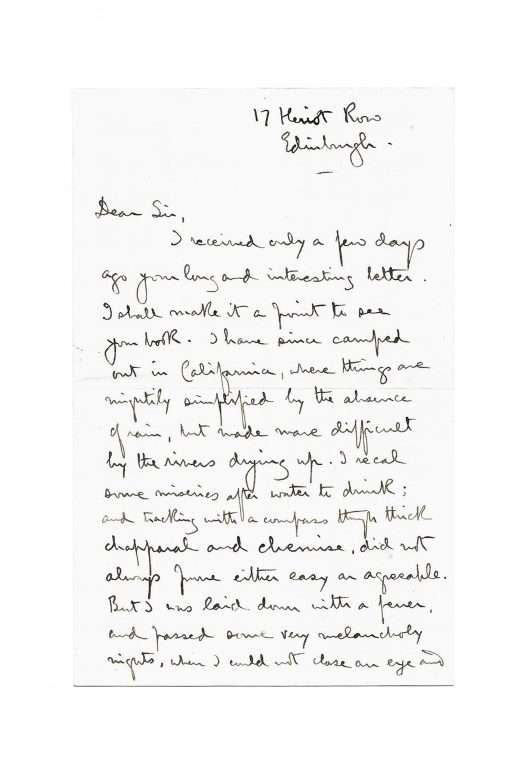 Autograph letter signed « Robert Louis Stevenson » to Hubert Smith-Stainer