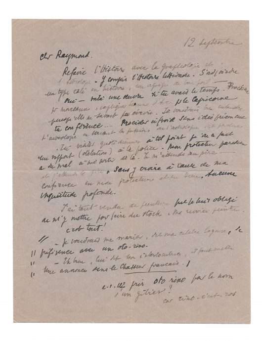 Autograph letter signed « Queneau » [to Michel Arrivé]
