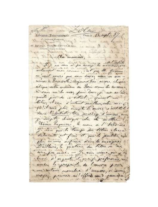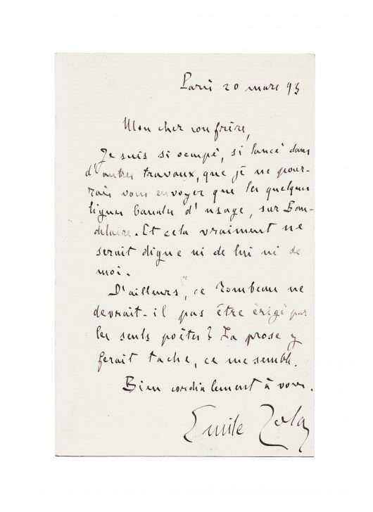 Autograph letter signed « Emile Zola » [to Albert Lacroix]