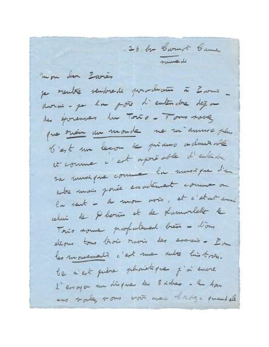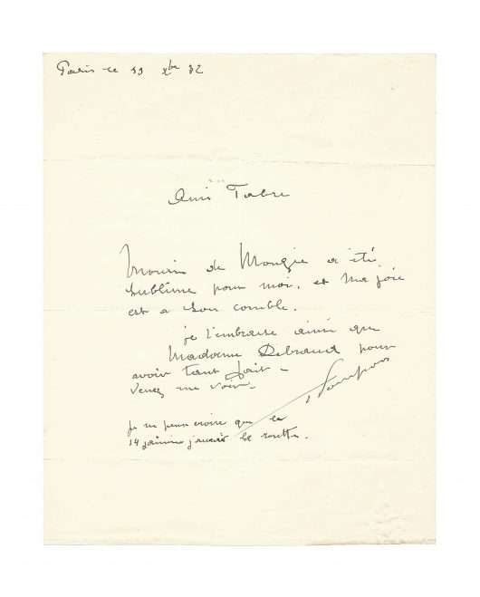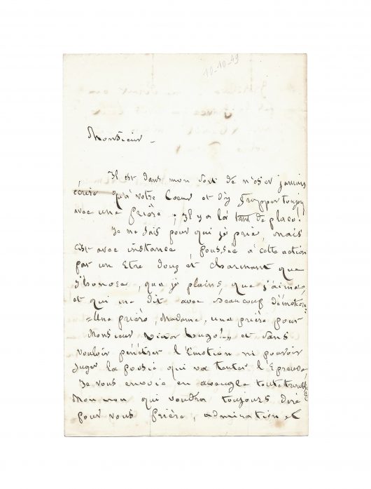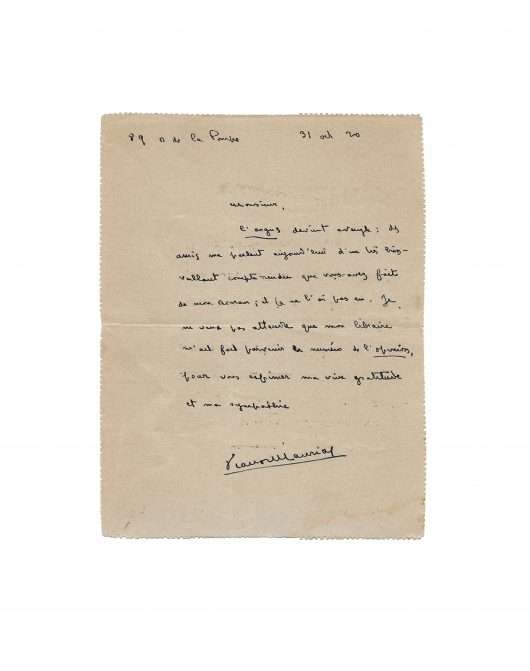 From Hugo to Cocteau, David to Gauguin, Chopin to Boulez, we offer here a wide range of important autograph letters from the greatest artists of the past centuries.