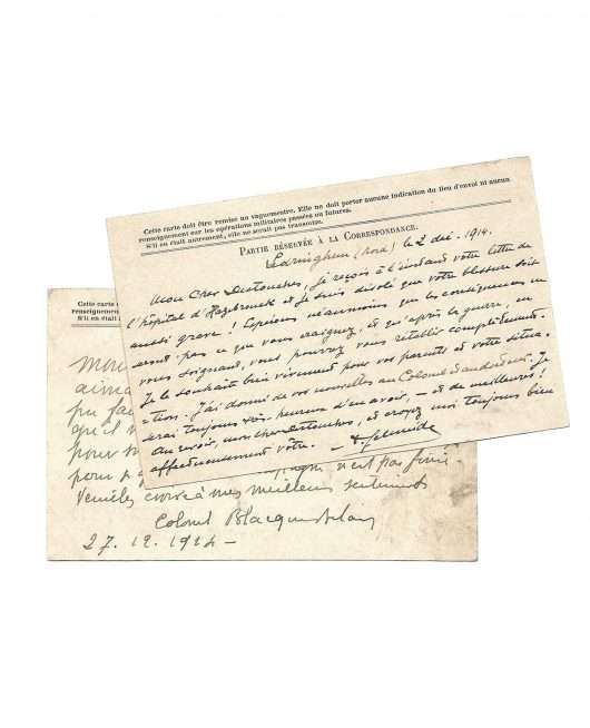 Autograph cards signed « Schneider » and « Colonel Blacque-Belair »