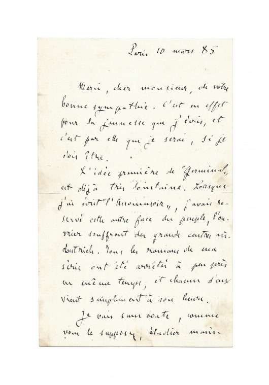 Autograph letter signed « Emile Zola » to Joseph Canqueteau