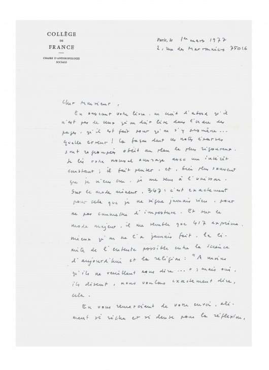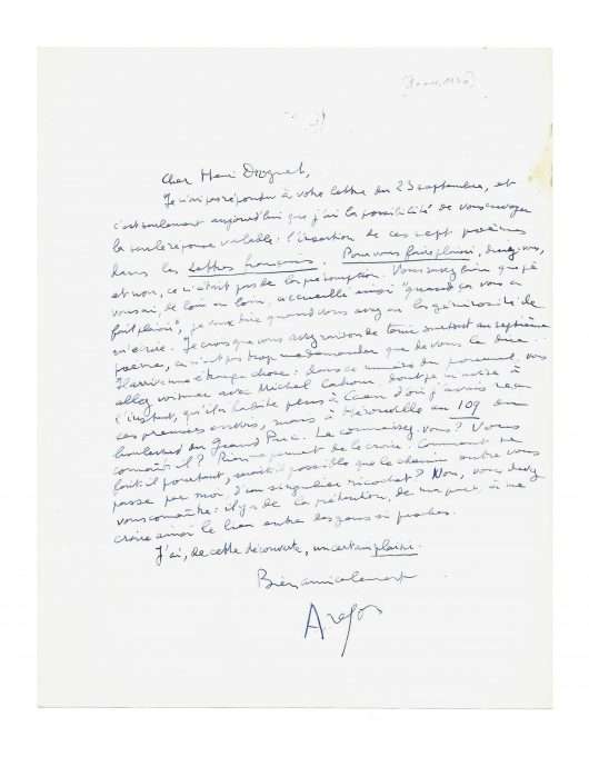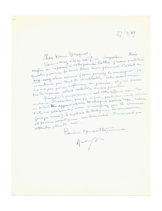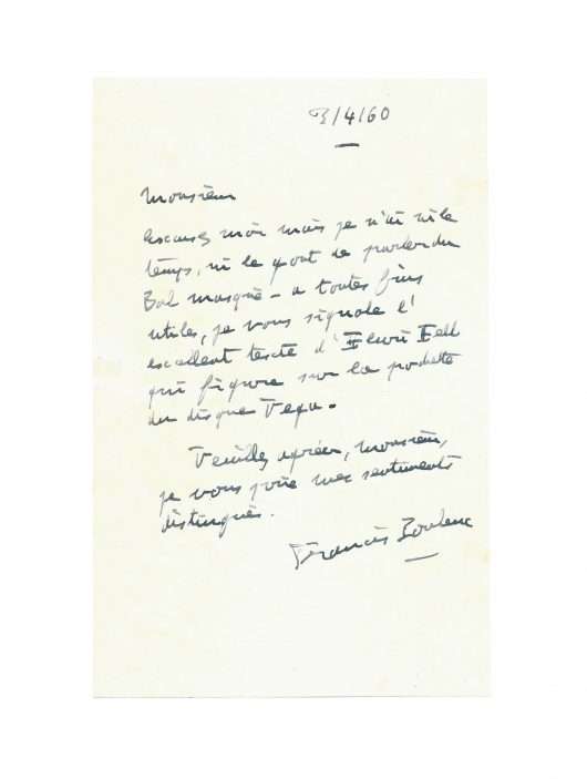 Paris, 15th January [19]68, 1 p. in-4° with autograph envelope