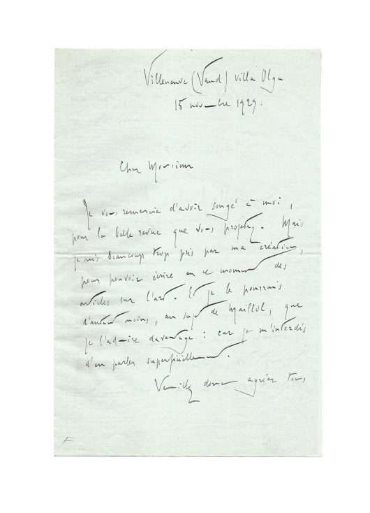 Villeneuve (Vaud) [Switzerland], 15 novembre 1929, 2 p. in-8°