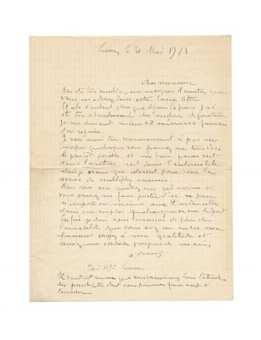 Paris, 23rd August 1892, 3 p. in-12° on graph paper