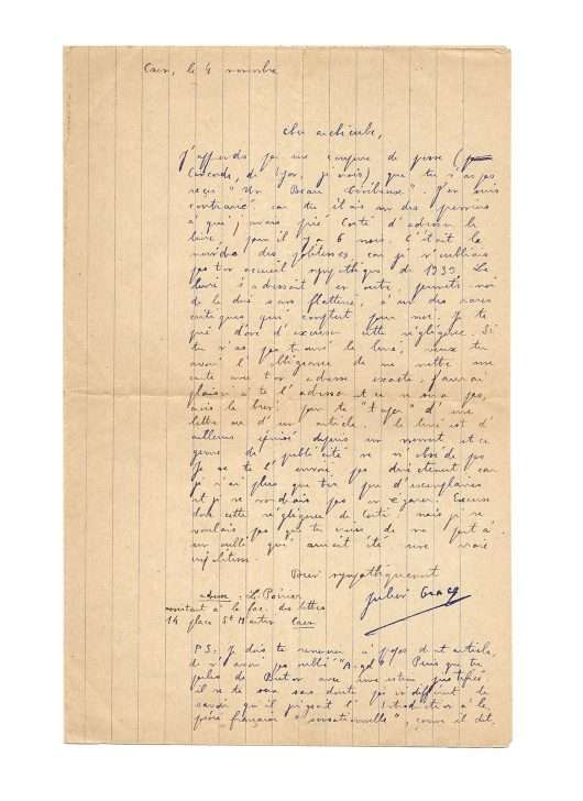 Autograph letter signed « Gve Flaubert » to Jules Sandeau