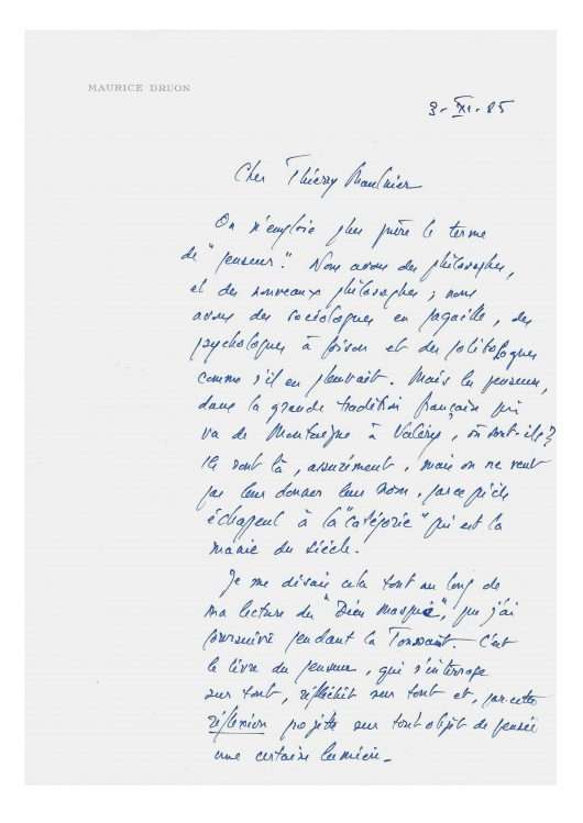 Autograph letter signed « And. Malraux » to Thierry Maulnier