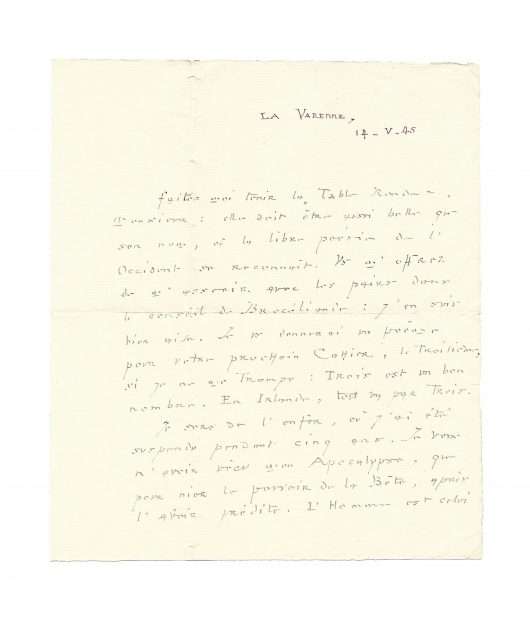 La Varenne, 14th May [19]45, 2 p. in-8°