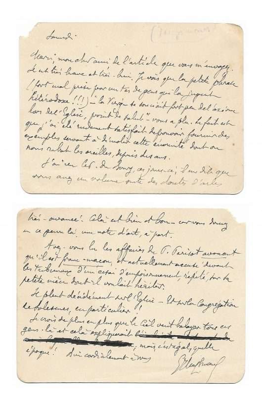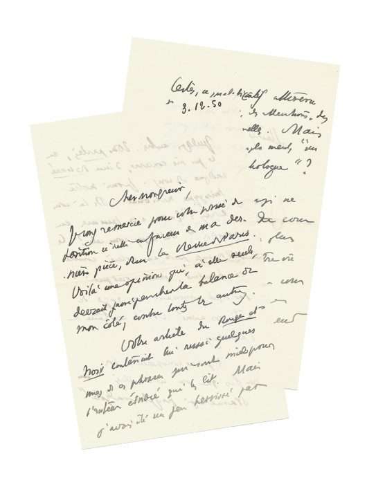 Two autograph card-letters signed « Jacques » to Dominique Aury