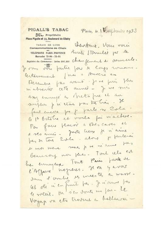 Paris, 3rd and 7th August [1936], 2 pp. in-8°