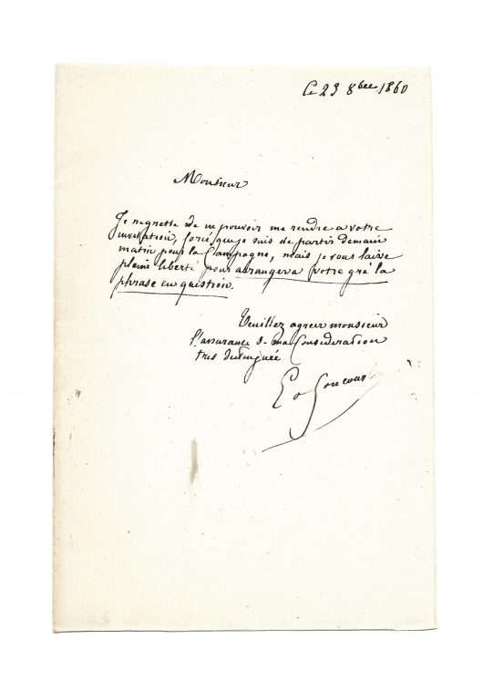 N.p.n.d, [Paris, after 1840], 2 p. in-8° in black ink