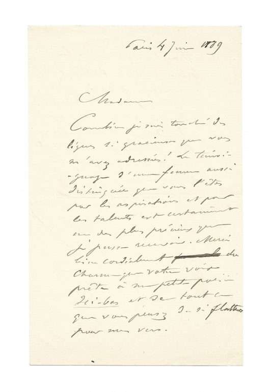 Paris, 4 June 1889, 1 p. 1/2 in-8° on laid paper