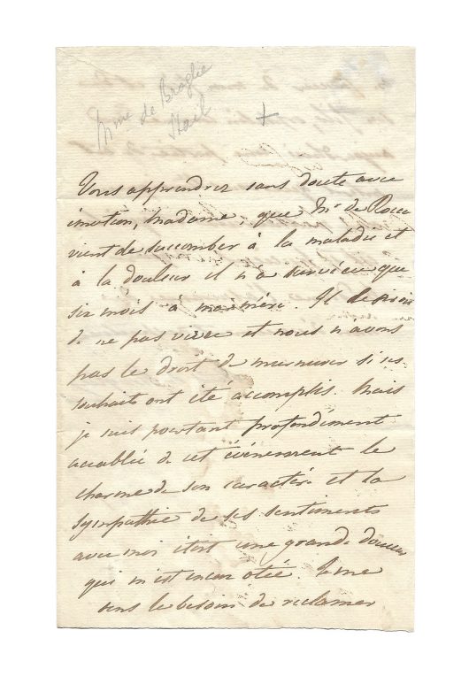 « Mr. de Rocca has just succumbed to illness and pain; he survived my mother by only six months »