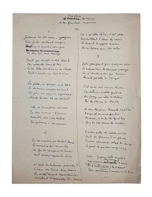 Autograph poem: « Mystères de Vénus et des fusiliers marins »