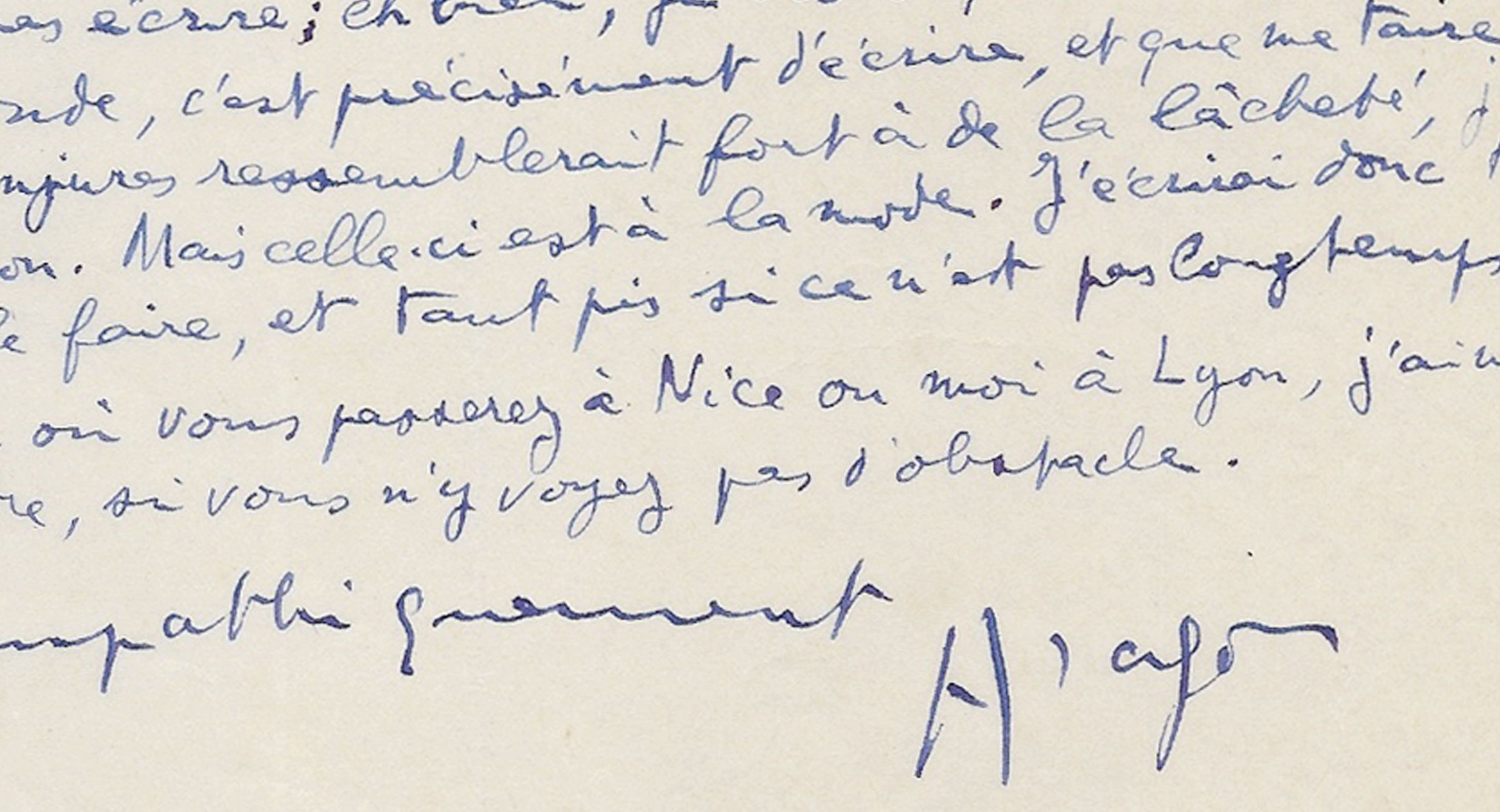 « Si je comprends bien… ce que j’aurais de mieux à faire serait de ne pas écrire ; eh bien, je crois que ce que je fais de mieux au monde, c’est précisément d’écrire, et que me taire pour éviter les injures ressemblerait fort à de la lâcheté, j’allais dire de la trahison. Mais celle-ci est à la mode. J’écrirai donc tant qu’on me laissera le faire, et tant pis si ce n’est pas longtemps. »