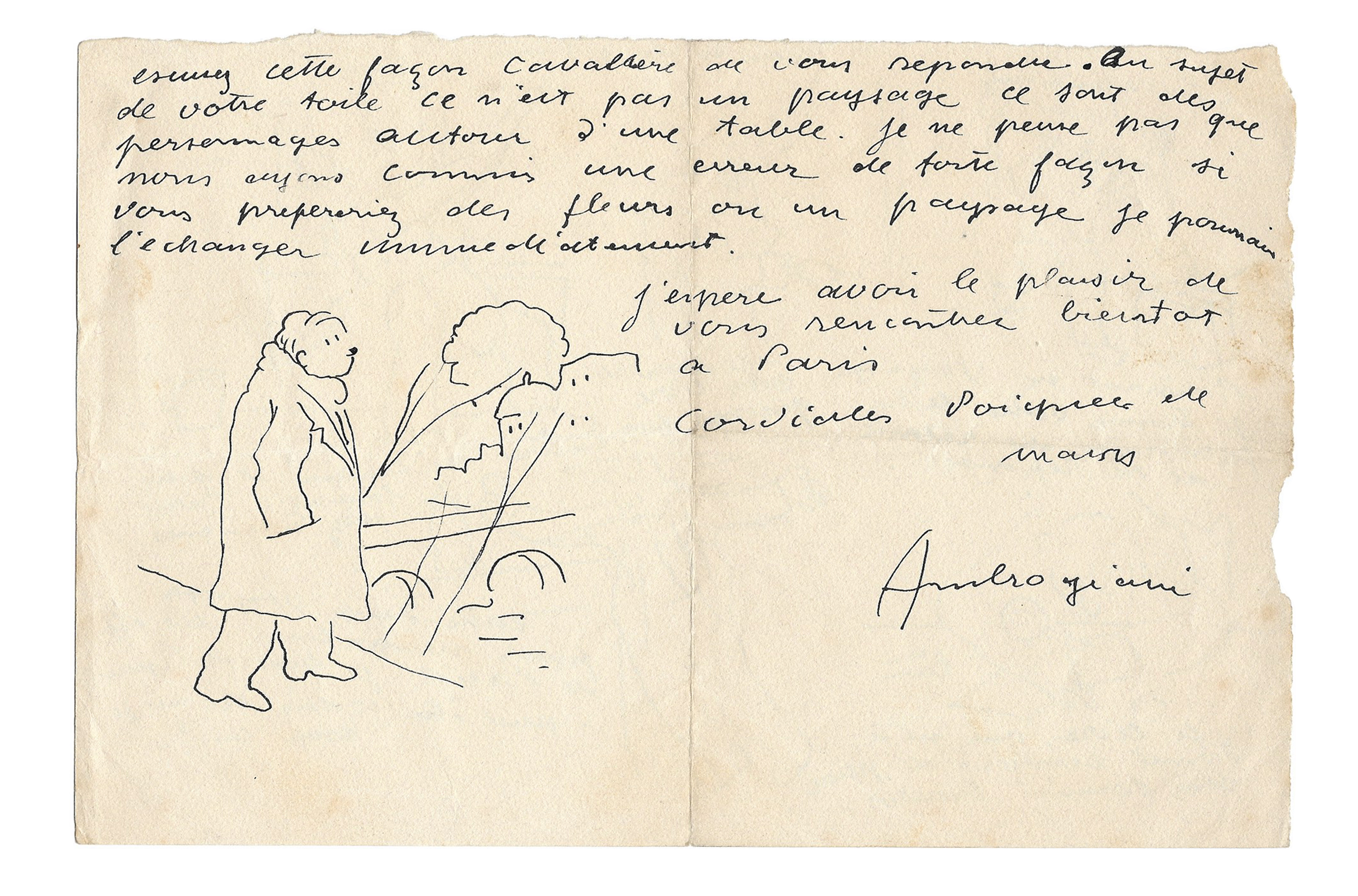 Lettre autographe signée « Ambrogiani », enrichie de six autoportraits