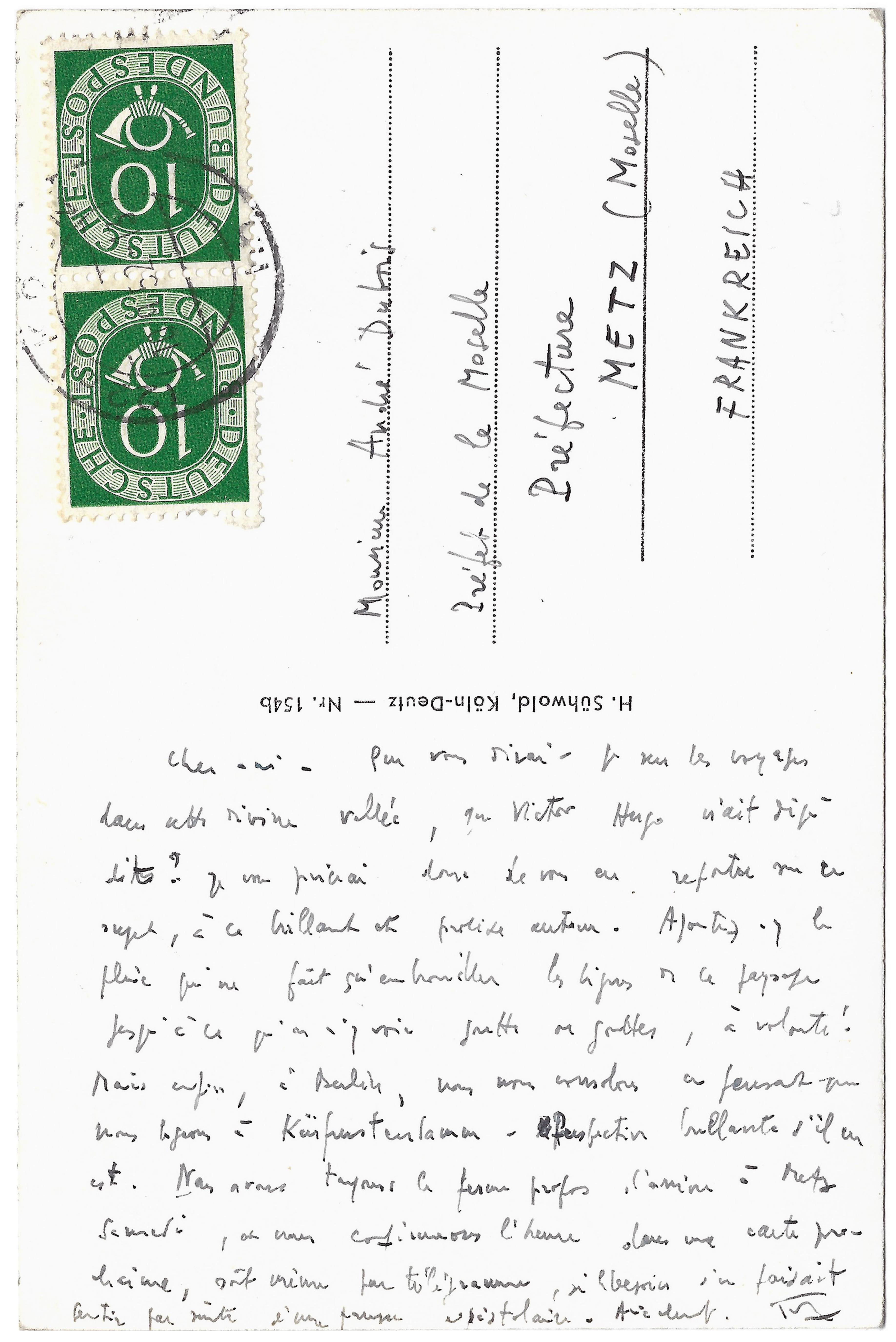Belle carte de Boulez envoyée de Cologne